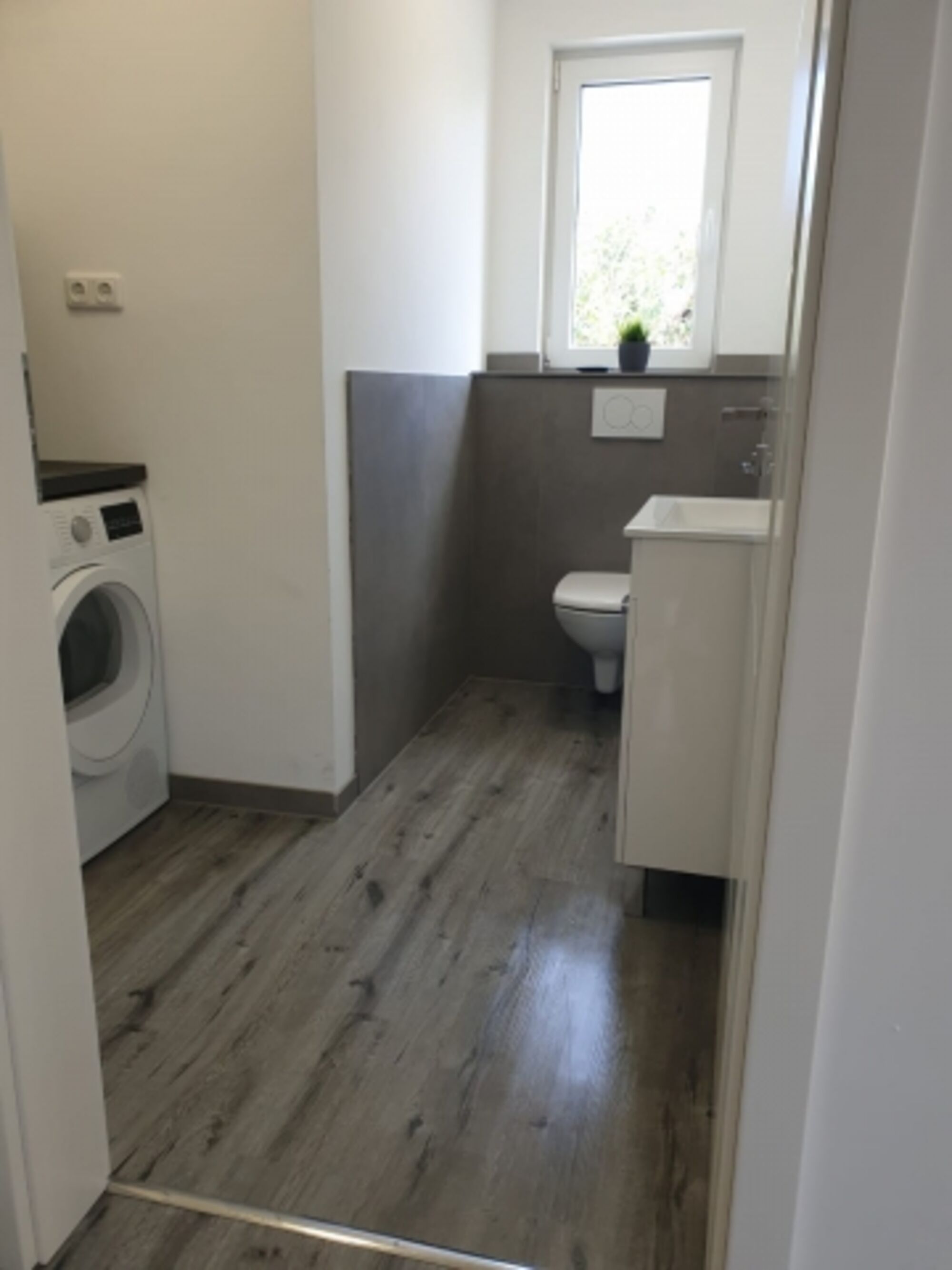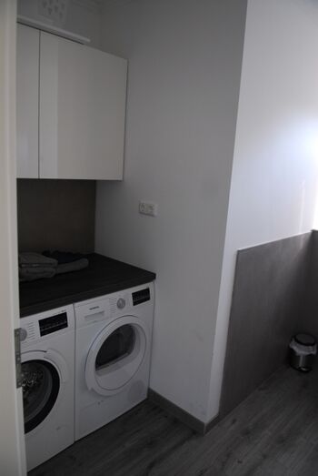 Im Erdgeschoss befinden sich außerdem noch ein Gäste-WC mit einer Waschmaschine & Trockner, sowie eine kleine Abstellkammer.
