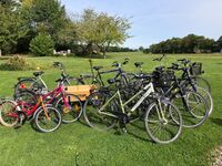 Es stehen viele Fahrräder und ein Bollerwagen zur freien Verfügung bereit.
