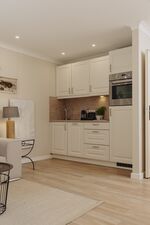 Ihre offen und umfangreich ausgestattete Küche lässt Ihre Selbstversorgung im Urlaub zum Kinderspiel werden. Ihr separates und praktisch geschnittene Schlafzimmer bietet Ihnen ein komfortables Boxspring-Bett und genügend Stauraum für Ihre Urlaubsgarderobe, während das helle Badezimmer mit seiner großen Dusche eine eigene kleine Wellness-Oase darstellt.