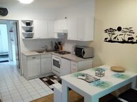 4-Platten Herd, Dunstabzugshaube, Kühlschrank mit Gefrierfach, Korkenzieher / Flaschenöffner, Essplatz in der Küche