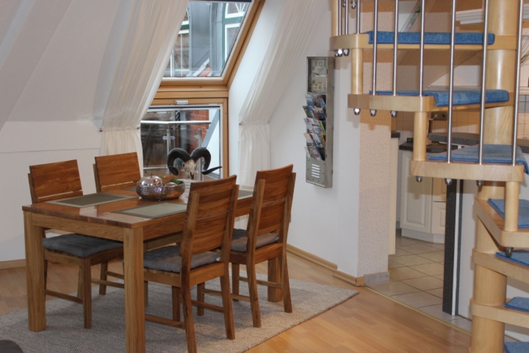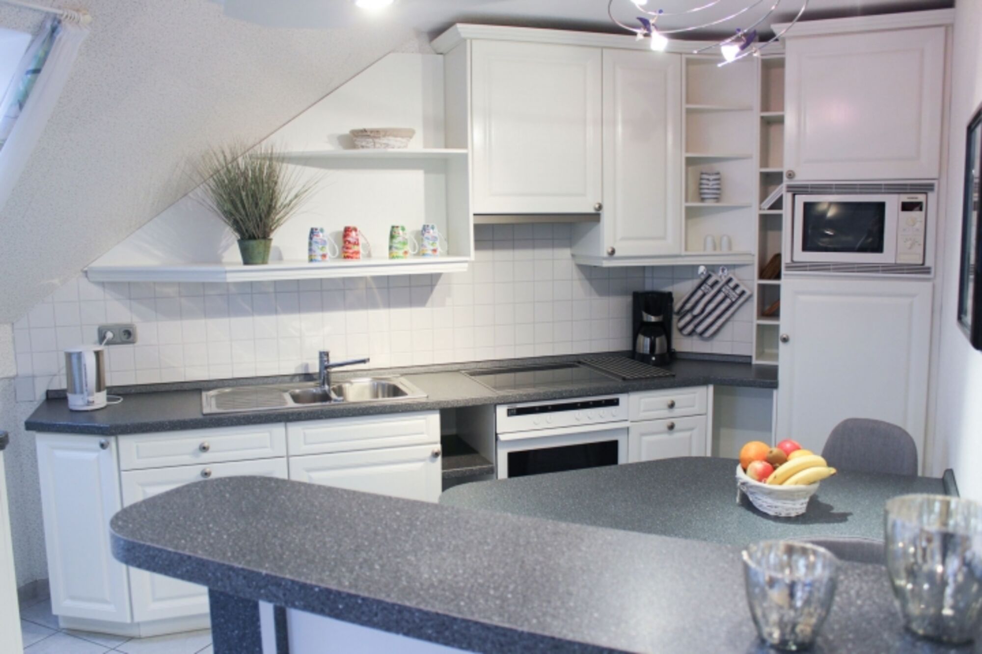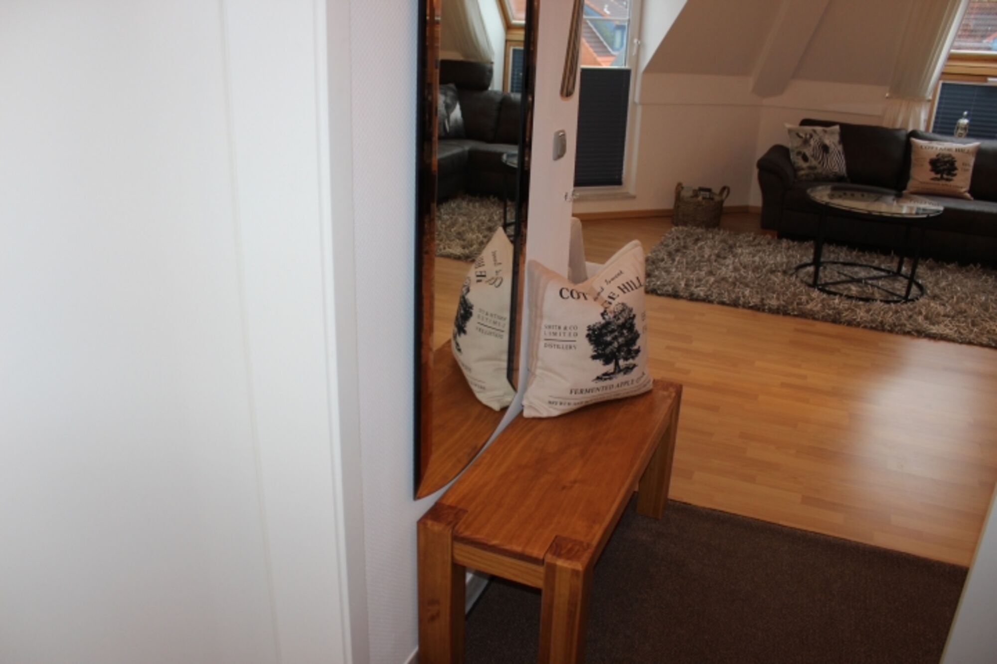 Hochwertig eingerichtete FW mit Schwimmbad und Sauna, kostenloses Glasfaserinternet! Strand- und Zentrumsnah... Whg. mit vollständig eingerichteter Küche mit Tisch und Stühlen. Wohnzimmer mit