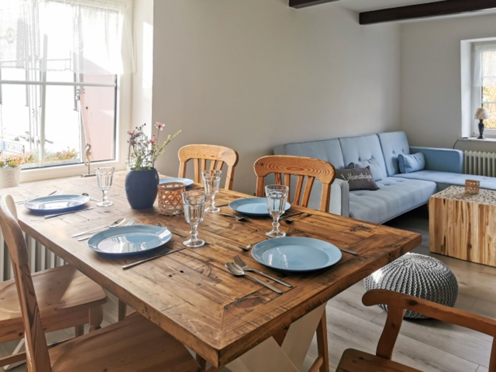 Hier findest du deinen Urlaub: Im renovierten „Unterdeck“ kannst du mit bis zu 7 Personen nächtigen. Die Wohnung auf ca. 92 m² befindet sich bequem im Erdgeschoss mit gemütlichen Holzbalkendecken. Zwei Schlafzimmer (eins mit Boxspringbett und das andere mit einem gemütlichen 1,40 x 2,00 Meter Bett), ein Kinderzimmer mit einem Etagenbett und ein Schlafsofa im Wohnzimmer erwartet dich hier. Das Wohnzimmer verfügt über einen Kamin für die kalten Nordseetage. Morgens könnt ihr in der gemütlichen Wohnküche frühstücken. Ein Badezimmer mit Dusche und ein Gäste-WC ist ebenfalls vorhanden. Im eigenen Garten können deine Kinder spielen oder ihr entspannt Euch. Eine Terrasse mit Grill steht ebenfalls für Euch bereit. Zwei PKW Stellplätze stehen Dir auch zur Verfügung.