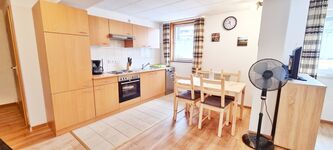 Die Küchen sind mit E-Herd, Backofen, Mikrowelle, Wasserkocher, Toaster und Filterkaffeemaschine ausgestattet, teilweise auch mit Spülmaschine.