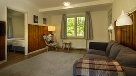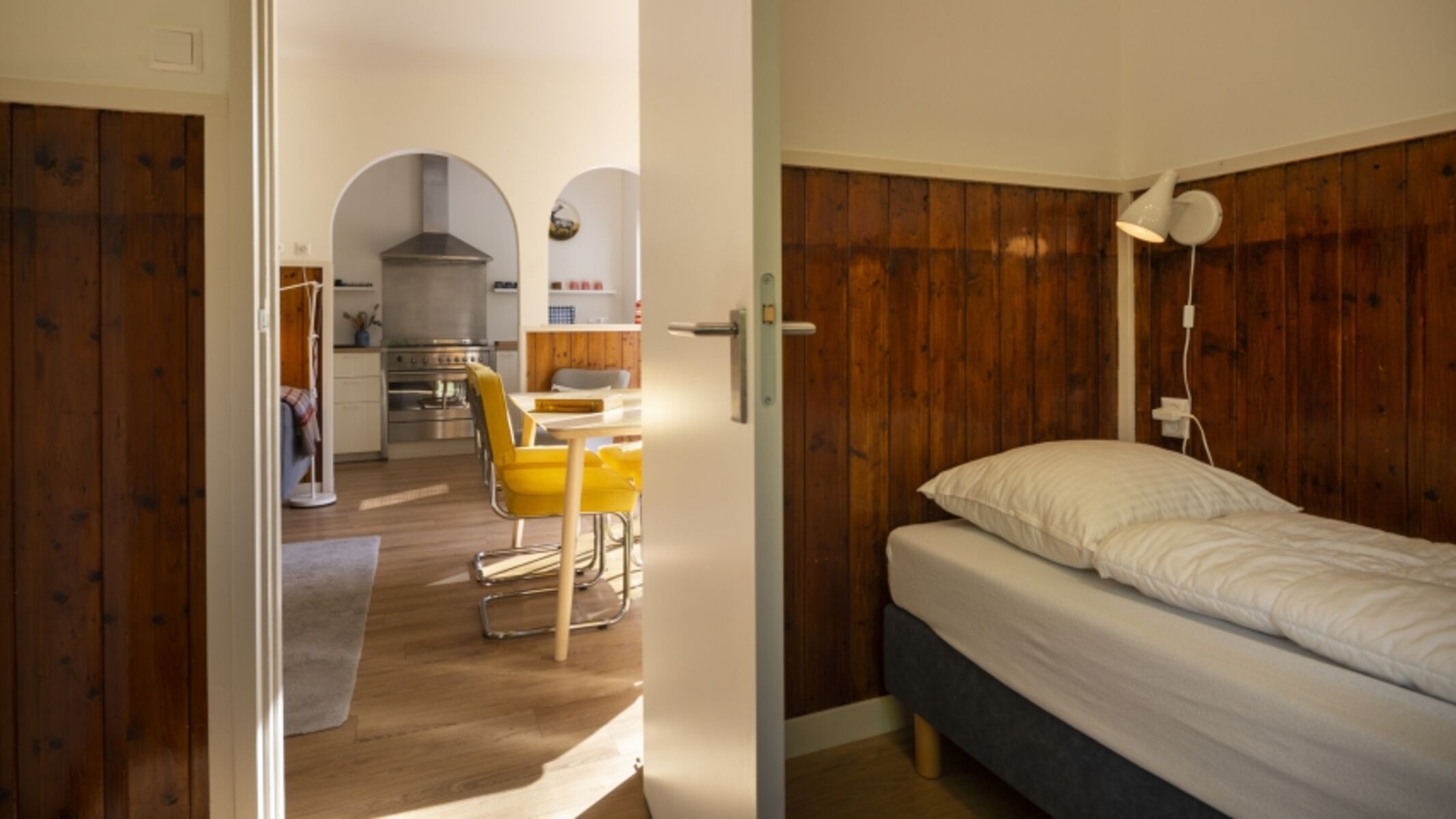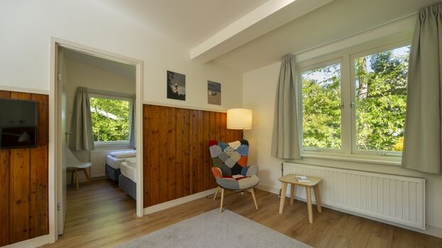 Das ebenerdige Haus hat ein stilvoll eingerichtetes Wohnzimmer mit angrenzendem Essbereich, wo Sie gemeinsame Spieleabende verbringen können. Die Küche ist modern eingerichtet und verfügt über eine Spülmaschine. Des Weiteren verfügt dieses Haus über ein Hauptschlafzimmer mit Boxspringbett mit einer Breite von 2,10 m und einem Fernseher, zwei extra Schlafzimmer und einem modernen Badezimmer mit separater Toilette. Außerdem finden Sie in der Garage des Hauses genügend Abstellraum für Fahrräder, einer E-Bike Ladestation, ein Dartbrett und ein Kickerspielautomaten.