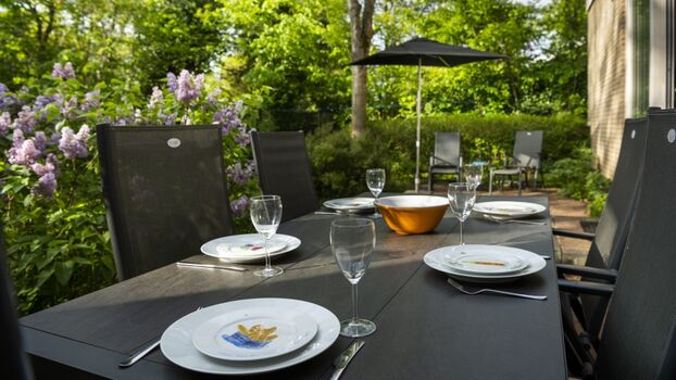 In dem großen, umzäunten Garten finden Sie zwei Terrassen mit komfortablen Gartenmöbeln. Vom Ferienhaus aus betreten Sie gleich die Terrassen, um von der Sonne oder dem Schattenplätzchen, den der Sonnenschirm hergibt zu genießen. Der Garten gibt Ihnen viel Privatsphäre und die Grünfläche ist für Kinder und Hunde perfekt geeignet!