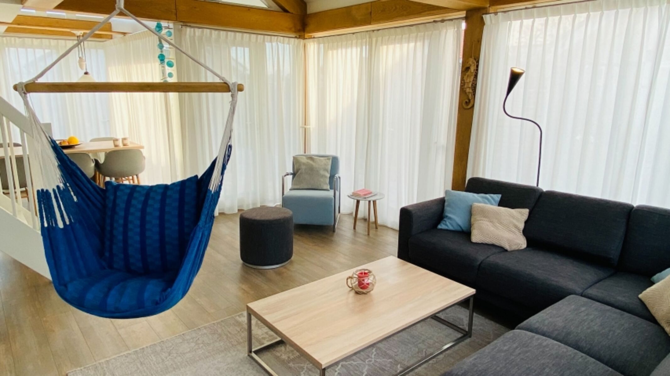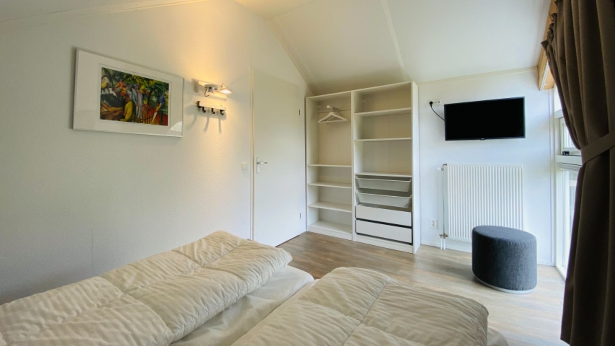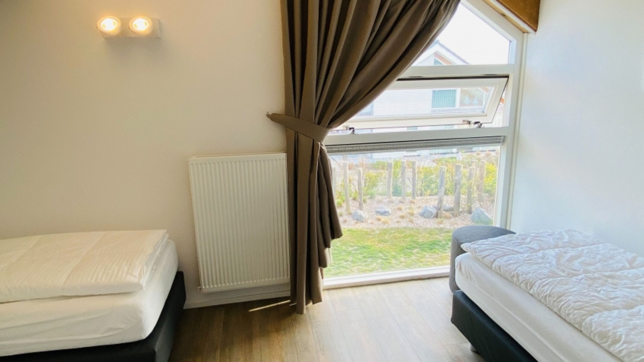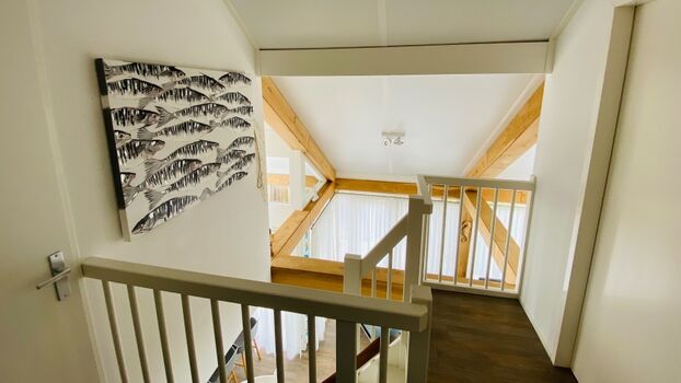 Dieses moderne, helle Strandhaus ist komplett ausgerüstet mit Qualitätsmöbeln. Das Wohnzimmer mit sich anschließendem Essbereich und moderner, offenen Küche sorgt auch für das gewisse Etwas. Auch an den etwas kälteren Tagen sorgt die Fußbodenheizung und der Pelletskamin für eine angenehme Wärme im Haus. Im Erdgeschoss befindet sich ein Schlafzimmer mit Badezimmer en Suite. Im Obergeschoss stehen Ihnen noch zwei weitere Schlafzimmer, ein Badezimmer und eine Toilette zur Verfügung.