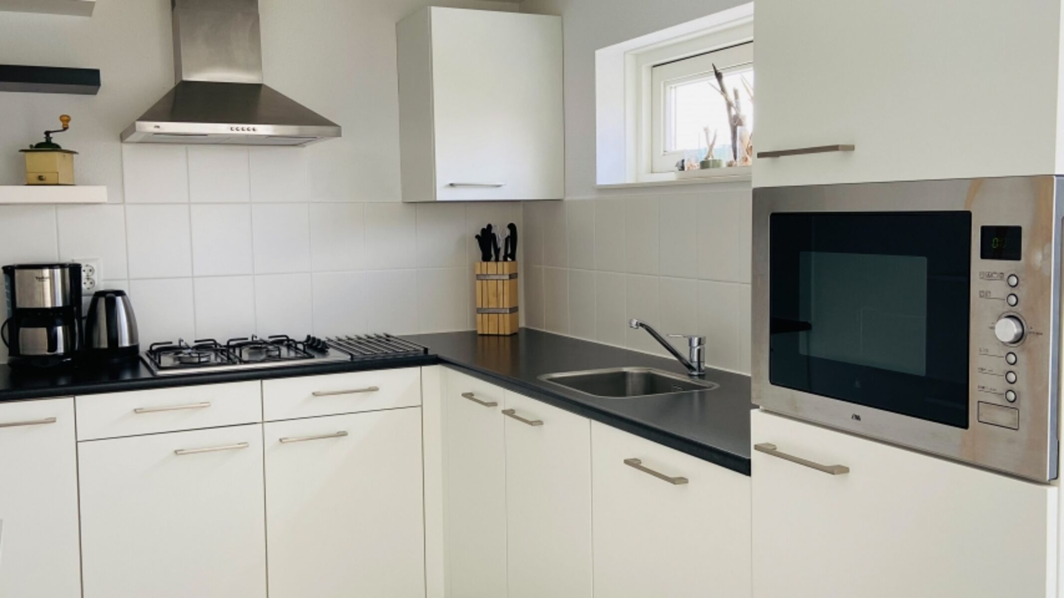 4-Platten Herd, Gasofen / Gasherd, Kühlschrank mit Gefrierfach, Senseo-Kaffeeautomat