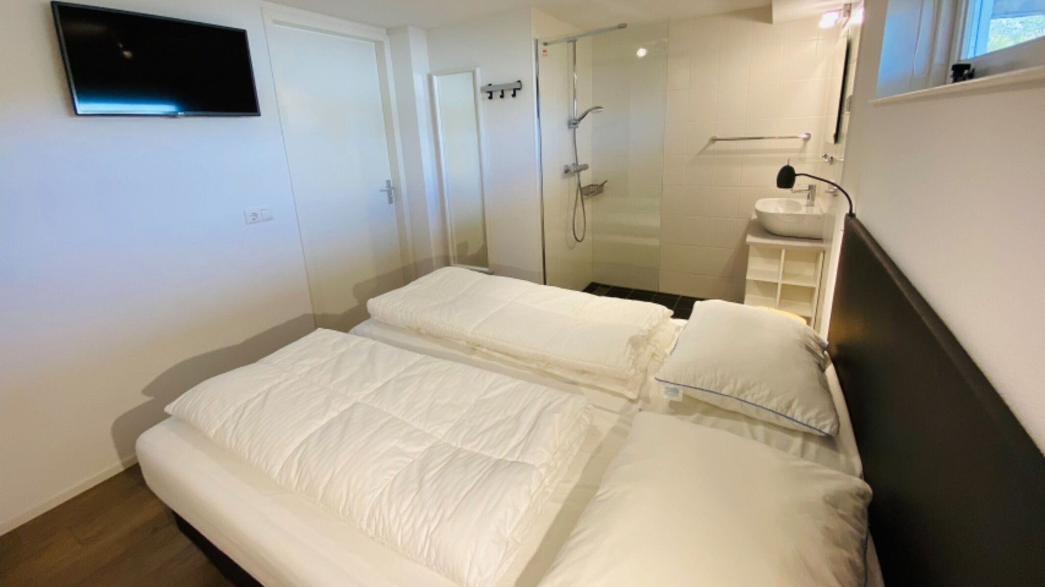 Matratzenmaß von 80 x 200 (2) Badezimmer en Suite Kleiderschrank Fußbodenheizung Vinyl Spiegel, Leselampe am Bett