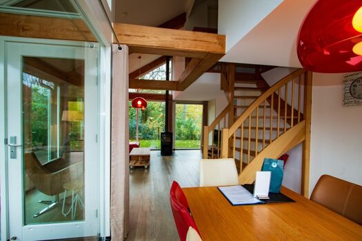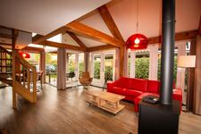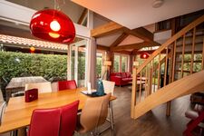 Das moderne Wohnzimmer ist modern und Farbenfroh eingerichtet und verfügt über einen wahnsinnigen Holzkamin, bodentiefe Fenster und Flügeltüren zur Terrasse hin. Der Essbereich grenzt direkt an die Küche, die von allen Annehmlichkeiten versehen ist. Es befinden sich drei Schlafzimmer im Haus. Für optimalen Komfort ist das Schlafzimmer im Erdgeschoss mit extra langen Matratzen von 210 cm ausgestattet! Des weiteren haben Sie im Obergeschoss noch ein luxuriös eingerichtetes Badezimmer mit Infrarotsauna und eine separate Toilette. Außerdem sind im Haus ein Treppengitter, Kinderstuhl und ein Babyset vorhanden! Die Treppe zum ersten Stock ist mit Rutschhemmenden Streifen ausgestattet.