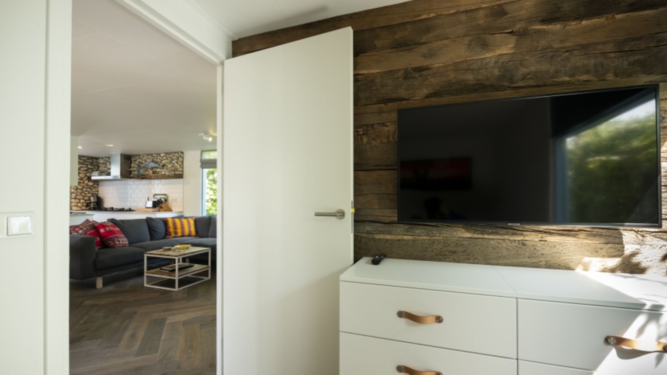 Das in 2019/2020 komplett renovierte Haus verfügt über ein großes Wohnzimmer mit einem tollen Pelletskamin und einer komplett und modern ausgestatteten Küche. Durch die Flügeltüren kommen Sie auf die sonnige Terrasse. Im Haus befinden sich drei Schlafzimmer, wovon zwei über eine Fernseher verfügen. Weiter befindet sich komfortables Badezimmer mit Regendusche und eine separate Toilette im Haus.