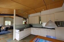 Der großräumige Garten, in Richtung Süden gelegen, hat eine große Terrasse. Sie können auch herrlich von der überdachten Terrasse mit offenem Kamin und Außenküche in Ihren Urlaub genießen. Auch befinden sich direkt am Haus mehrere Parkgelegenheiten und es gibt eine Ladestation. Dieses Haus ist mit Sonnenkollektoren ausgestattet.