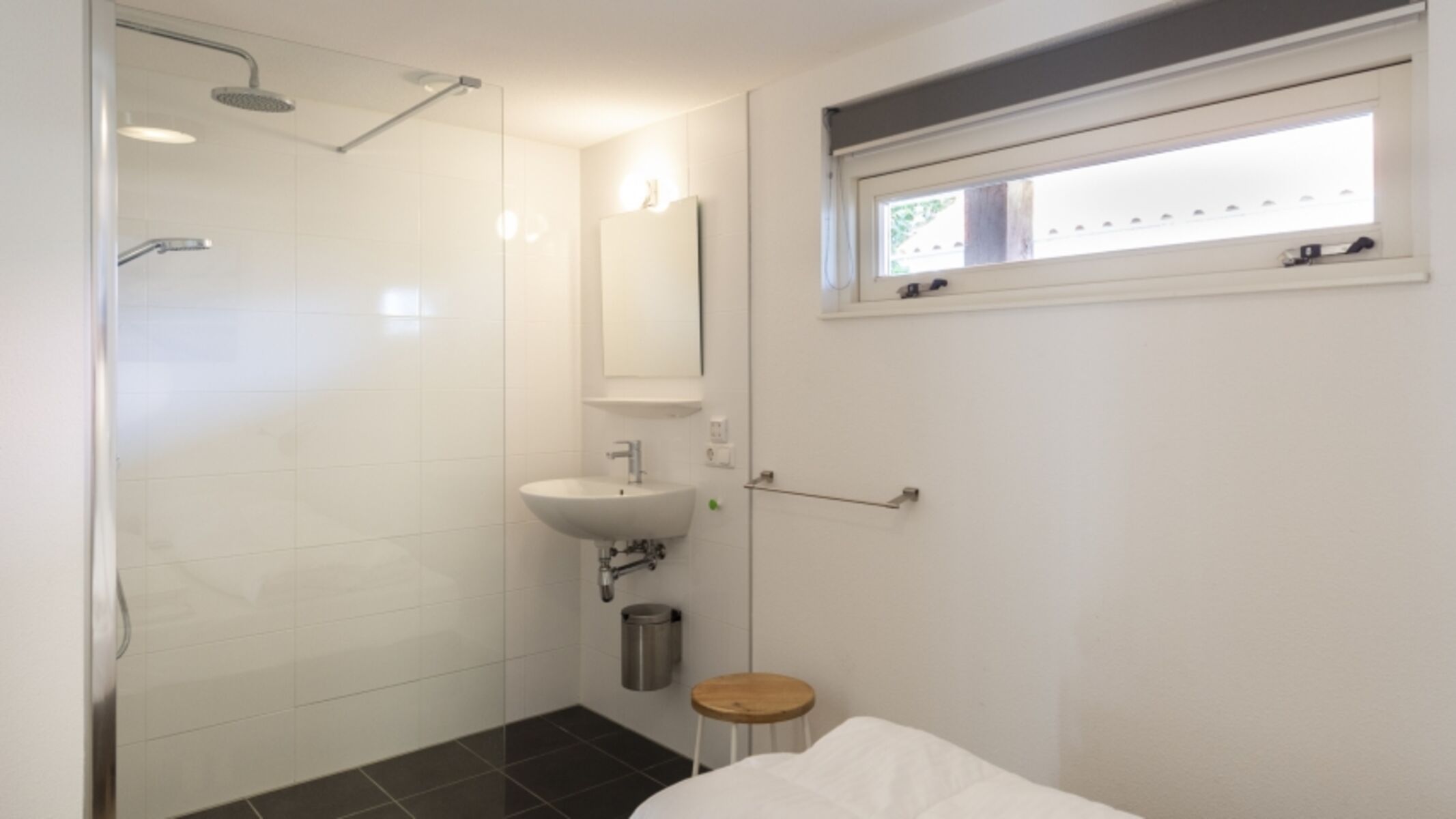 Matratzenmaß von 80 x 200 (2) Badezimmer en Suite Begehbare Dusche Waschbecken Badheizkörper Fußbodenheizung PVC Einzelbett, Spiegel