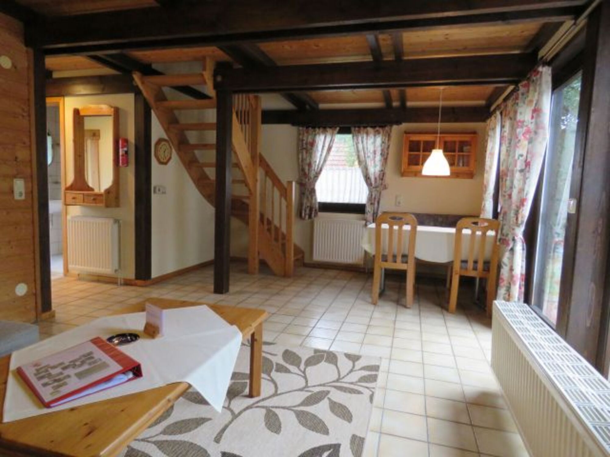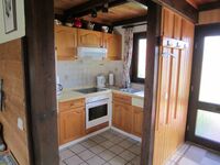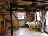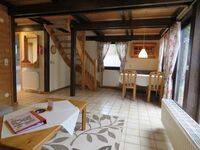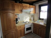 Ca. 65 m² Wohn- und Nutzfläche, bis 6 Personen, EG: Wohnraum tlws. mit Schlafcouch und Essecke, Küche (4 Plattenherd/Backofen, Kühlschrank, Gefrierfach). Dusche/WC, Diele, Abstellraum innenliegend. Terrasse. OG: 2 Schlafräume mit je 2 Betten oder Doppelbett. Das Ferienhaus ist komplett für 6 Personen eingerichtet.
