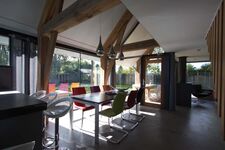Das Ferienhaus verfügt über ein helles und großzügiges Wohnzimmer mit einem geselligen offenen Kamin, angrenzendem Essbereich und moderner, offenen Küche. Es stehen Ihnen drei Schlafzimmer und zwei Badezimmer, wovon eins en Suite und zwei Toilette zur Verfügung. In einem der zwei Badezimmer befindet sich außerdem eine Infrarotsauna, wo Sie sich herrlich entspannen können.