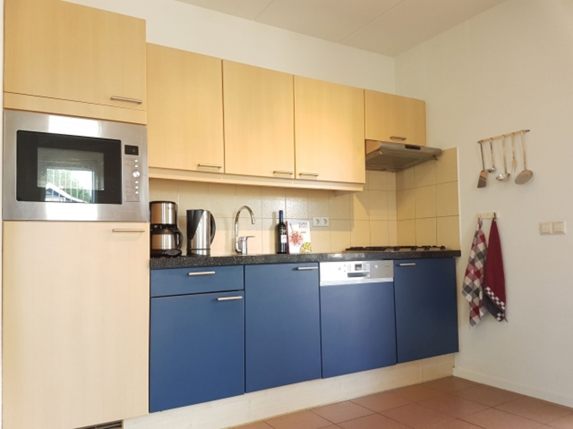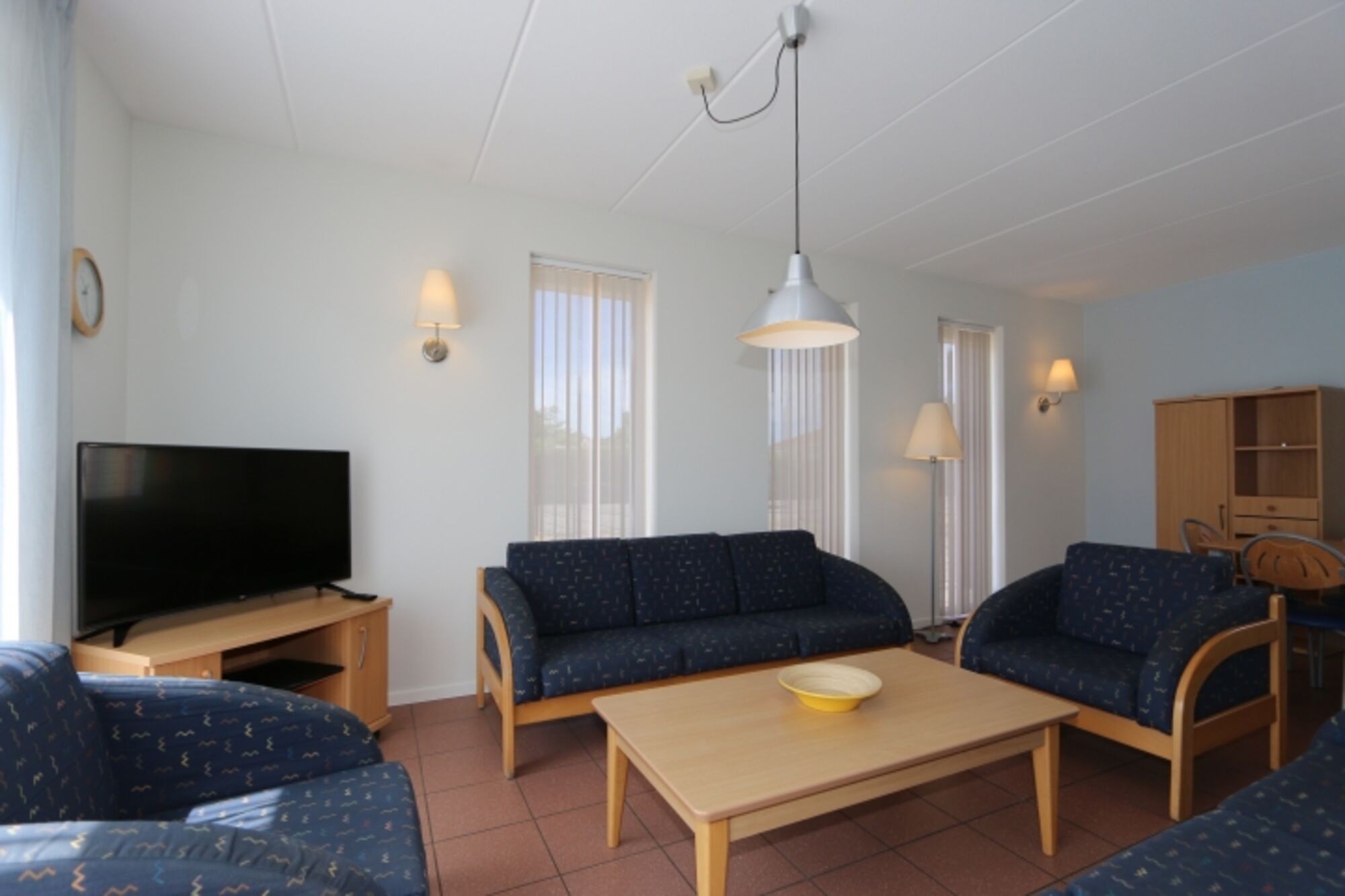 Das Ferienhaus verfügt über ein geselliges, großzügiges Wohnzimmer mit angrenzendem Essbereich und einer komplett ausgestatteten, offenen Küche. Die Küche grenzt an die Terrassentür, wodurch Sie einfach auf der Terrasse dinieren können. Im Haus sind vier Schlafzimmer anwesend. Das Hauptschlafzimmer befindet sich im Erdgeschoss und verfügt über ein Boxspringbett. Auch finden Sie in einem der Schlafzimmer ein Etagenbett und ist weiter auch noch Platz für ein Beistellbett. Das Badezimmer mit Badewanne und ebenerdiger Dusche befindet sich außerdem auch im Erdgeschoss. Zwei separate Toiletten sind anwesend.