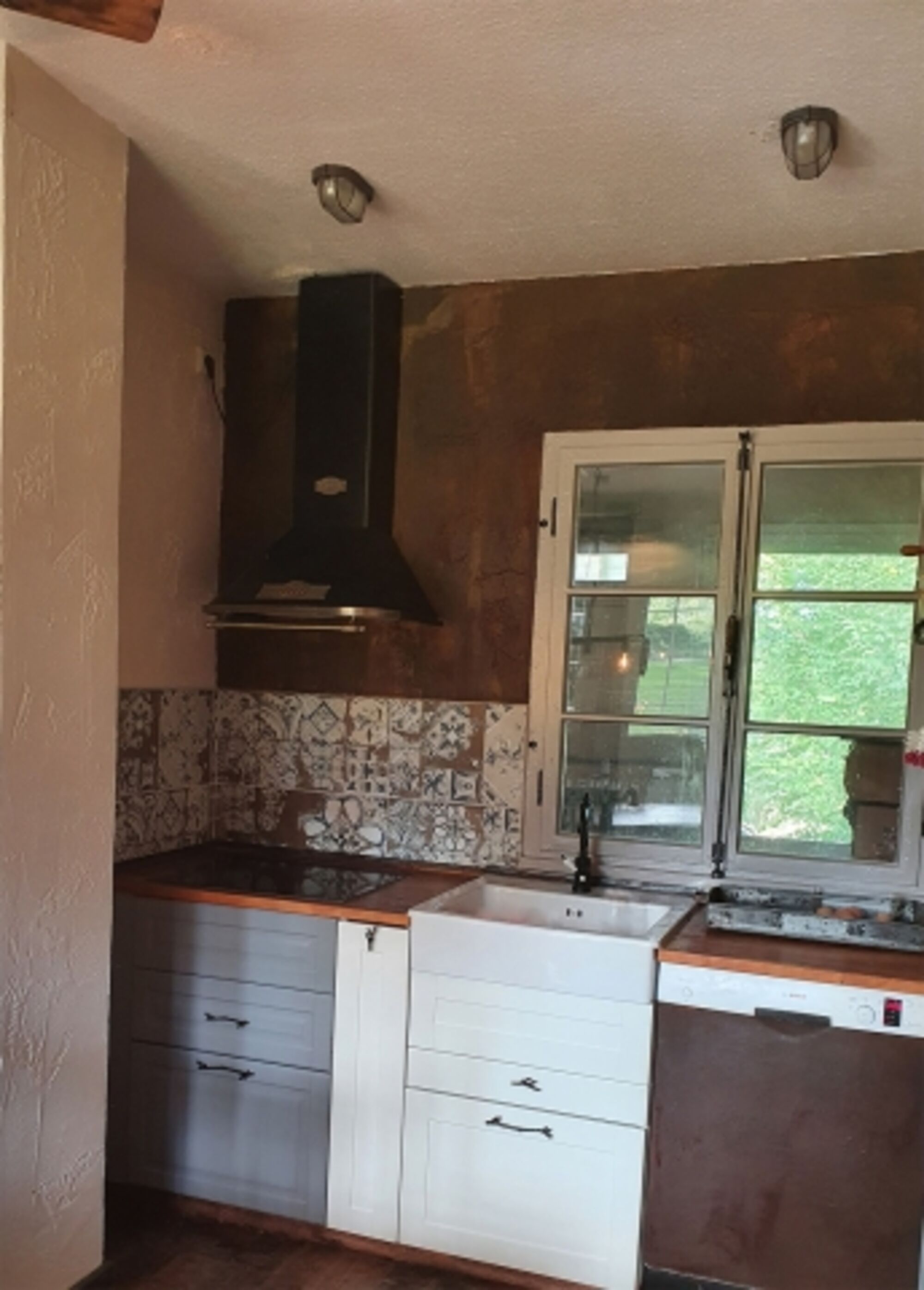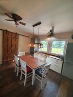 4-Platten Herd, Cerankochfeld, Dunstabzugshaube, Gefrierschrank, Korkenzieher / Flaschenöffner, Geschirrhandtücher, Essplatz in der Küche