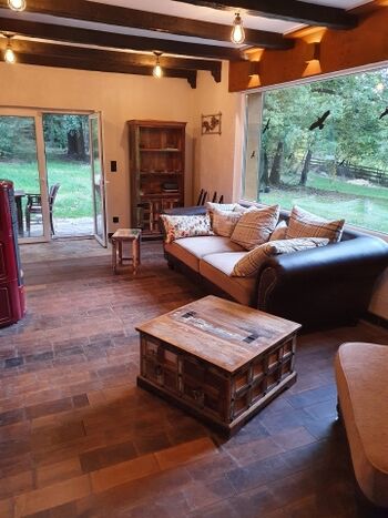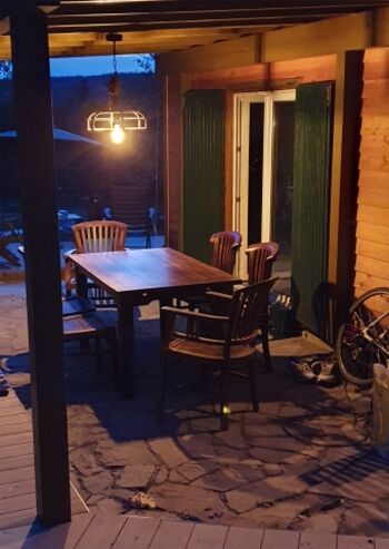 Idyllisch ruhig gelegenes Ferienhaus "Unsere kleine Farm" in der Lahrer Herrlichkeit im Westerwald mit 7500 m² eingezäuntem Naturgrundstück, umgeben von Wald und Wiesen mit schönem Weitblick. Direkt am Waldrand in der Lahrer Herrlichkeit gelegen, bietet das traumhafte Ferienhaus einen unvergesslichen Urlaub für Hundehalter, Reiter, Wanderer, Pilzsammler, Naturfreunde und Ruhesuchende. Auf einem rund 7.500 qm komplett eingezäuntem Areal sind Sie Ihr "eigener Herr". Für Kinder ein wahres Paradies, aber auch Ihre Hunde und Pferde werden ihre Freude an dem abwechslungsreichen Naturgrundstück haben. Lassen Sie sich morgens von "Jakob", dem Hahn im Korb wecken. Seine 5 Hennen werden Sie täglich mit frischen Eiern verwöhnen. Auf der teilüberdachten Terrasse kann man mit Blick auf seine Vierbeiner im Garten ein ausgiebiges Frühstück genießen. Tagsüber bietet das facettenreiche Mittelgebirge und Naherholungsgebiet unzählige Sport- und Freizeitaktivitäten so wie schöne Reit- und Wandermöglichkeiten ab Haus. Ein Pelletofen sorgt abends für behagliche Lagerfeueratmosphäre und vom Wohnzimmer lassen sich durch das Panoramafenster und dem schönen Weitblick die traumhaften Sonnenuntergänge beobachten.