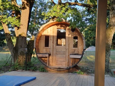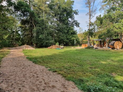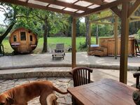 Liegewiese, Gartenmöbel, Kohlegrill, Überdachte Terrasse (mobil), Sauna im Garten