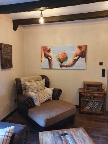 TV-Sat, Playstation 4, Bücher, Kaminofen, 3er-Sofa, Sessel
