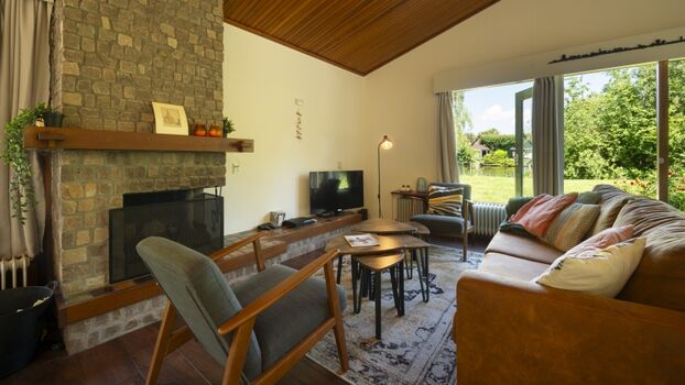 Das Ferienhaus verfügt über ein gemütliches und modernisiertes Wohnzimmer mit offenem Kamin und Essbereich. Eine halb offene Küche mit allem was man brauch, finden Sie auch. Durch die vielen Fenster, ist es sehr freundlich und hell im Haus und noch dazu haben Sie eine tolle Aussicht auf den großen Garten und dem Wasser. Über die Terrassentüre im Wohnzimmer haben Sie direkten Zugang zum Garten, der sich auf der Hinterseite des Hauses befindet. Die Kinder können abends mit der Playstation 3 gamen oder sich einen Film über Netflix anschauen, während Sie es sich mit einem guten Glas Wein in der Sitzecke gemütlich machen. Es befinden sich 2 Schlafzimmer im Haus, wovon eins mit einem Etagenbett ausgestattet ist und ein Zimmer mit zwei 1 Personenbetten und einem extra Bett mit ausziehbarer Matratze.