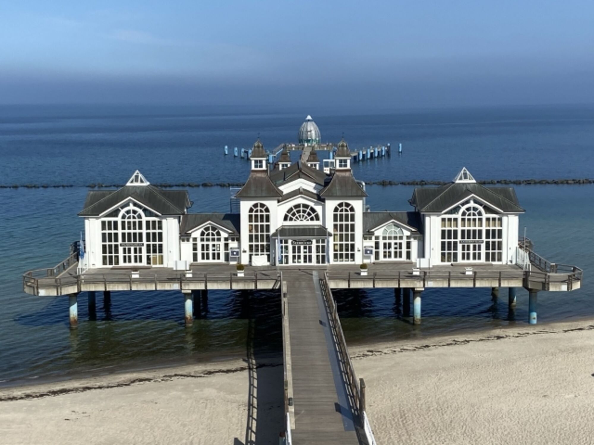 Die Seebrücke ist eines der Wahrzeichen von Rügen und immer ein Besuch wert. Hier befindet sich auch ein Restaurant und mit einer Tauchgondel können Sie in die Ostsee abtauchen.