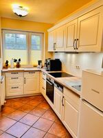 Die separate Küche im Landhausstil wurde im Oktober 2024 neu eingebaut. Mit großzügiger Arbeitsplatte und geräumiger Aufteilung verfügt die Küche über eine Kühl-Gefrierkombination, 4-Platten-Induktionsfeld mit Backofen, Spülmaschine, Kaffeevollautomat sowie diverses Kleininventar, dass die Küchenausstattung komplettiert.
