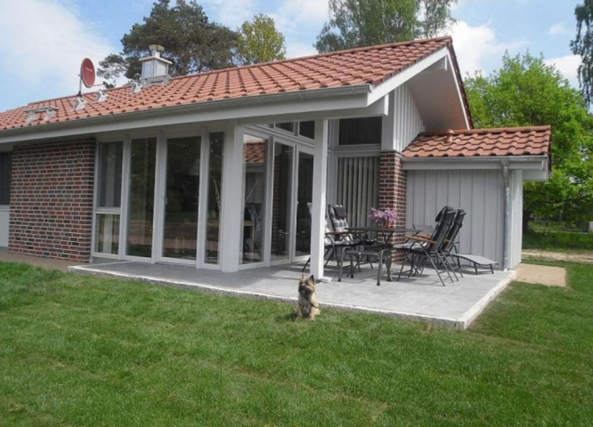 Zu dem Ferienhaus gehört ein 400 m² großes Grundstück mit Liegewiese und überdachter Terrasse. Vom 1.Mai bis 30. September ist ein Ruderboot direkt an der Müritz für kleine Bootstouren und Angelfahrten inklusive.