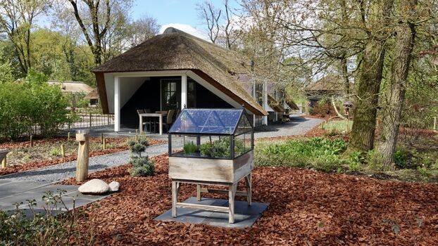 Ein Aufenthalt in diesem schönen, reetgedeckten und ebenerdigen Ferienhaus ist ein Erlebnis. Das Haus Sprielderbosch „De Zonnehoed“ ist mit Ihr Aufenthalt in diesem wunderschönen, ebenerdigen und reetgedeckten Ferienhaus ist ein echtes Erlebnis. Das Haus Sprielderbosch „De Zonnehoed“ ist mit allem Komfort ausgestattet, um Ihren Aufenthalt so angenehm wie möglich zu gestalten. Im gesamten Haus gibt es eine Fußbodenheizung (max. 21,5 °C), und eine der Terrassen ist überdacht und mit einem elektrischen Heizstrahler ausgestattet. Auf der anderen Terrasse können Sie im Schatten hoher Eichen sitzen oder die Sonne genießen.