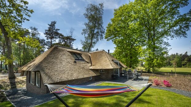 Landgut Sprielderbosch 27 einem Strohdach versehene Ferienhaus mit Kamin