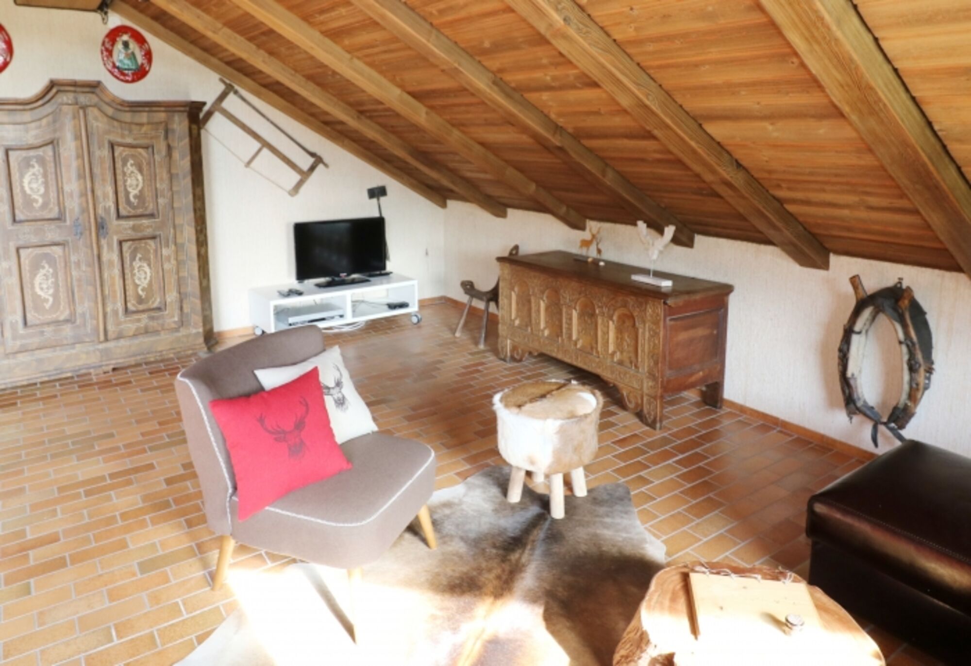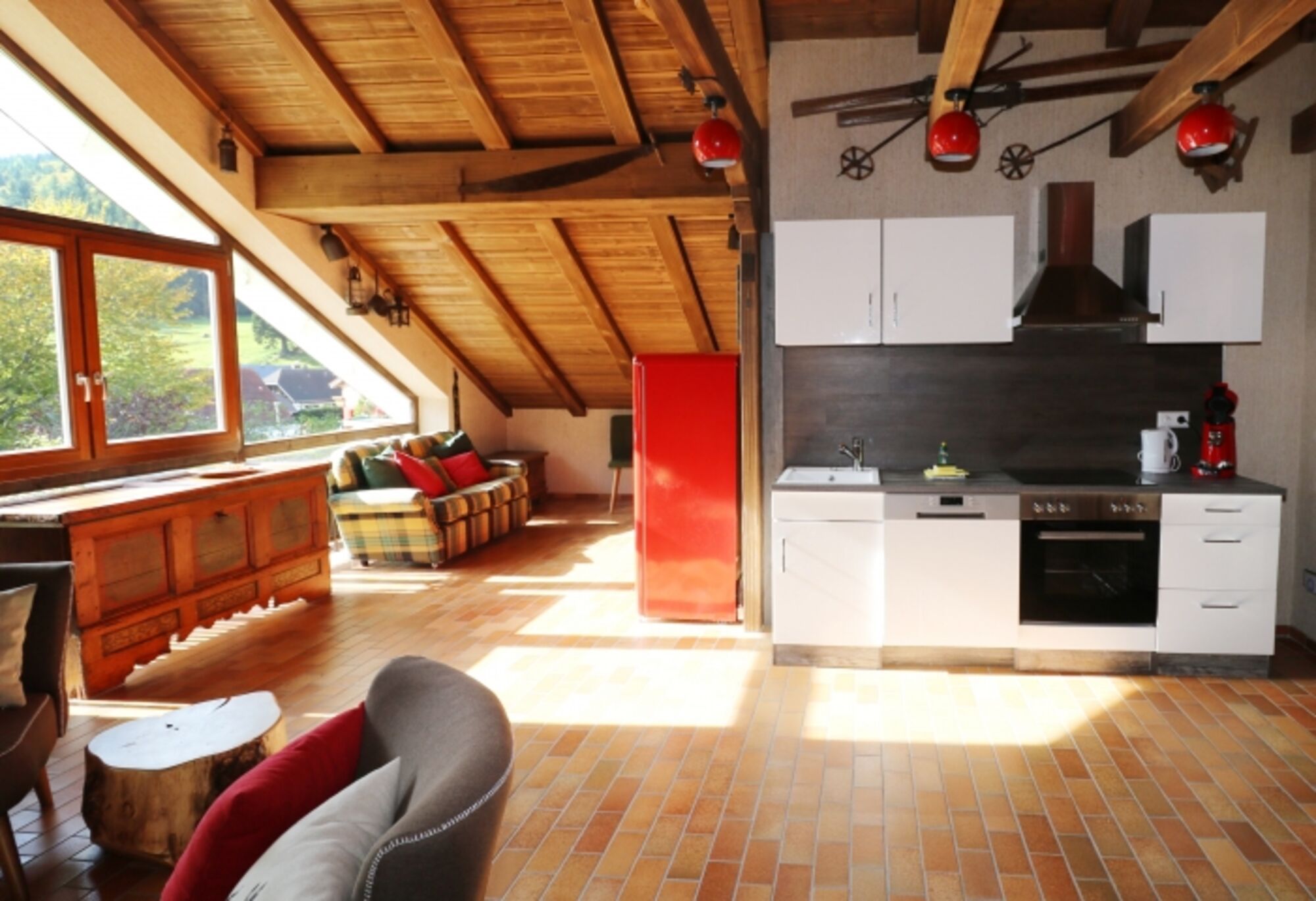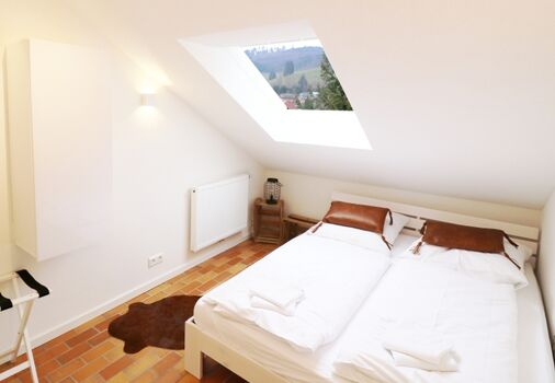 Die Wohnung Schwarzwaldblick liegt im Dachgeschoss ( 1. Stock) des Ferienhauses und ist über eine Wendeltreppe zu erreichen.
