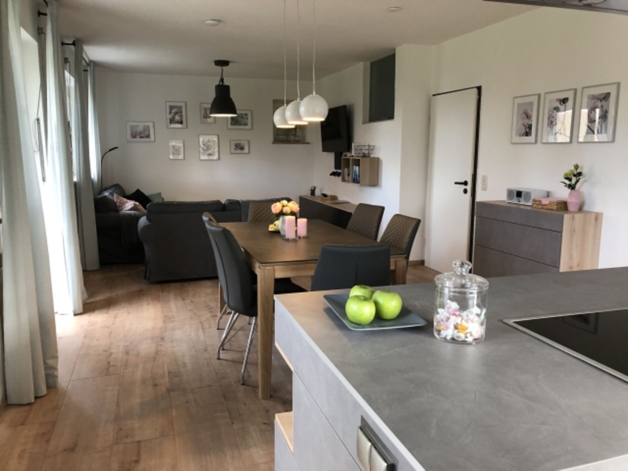Beide Wohnungen sind selbstverständlich voll ausgestattet, mit Küche und einem offenen Wohn- und Essbereich, jeweils einem Badezimmer und 3 Schlafzimmern.