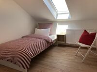 Hier finden Sie zwei Einzelbetten (90x200) mit Taschenfederkernmatratzen, Nachttische mit Nachttischlampen und zwei Schränke bietet Ihnen dieses Schlafzimmer. Kissen und Decken sind selbstverständlich bereits für Sie bezogen. Auch in diesem Schlafzimmer haben Sie einen direkten Zugang zu Garten.