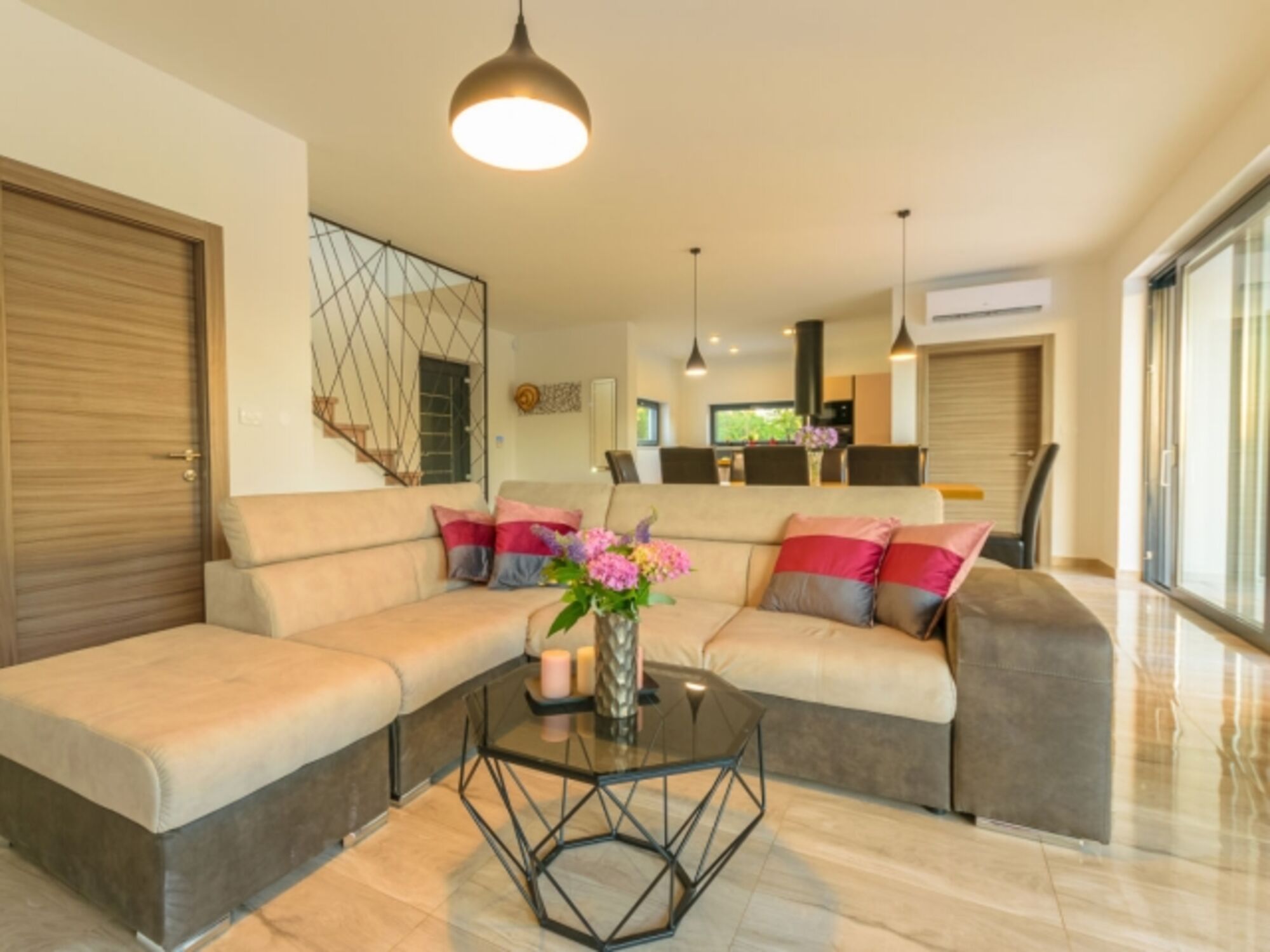 Das Innere ist hell und geschmackvoll eingerichtet und vermittelt ein heimeliges Gefühl. Die Villa verfügt über 3 Schlafzimmer, jeweils mit eigenem Bad, und das Wohnzimmer ist modern eingerichtet und mit einem großen SMART-TV ausgestattet. Das Haus ist vollständig klimatisiert und bietet WLAN-Zugang.