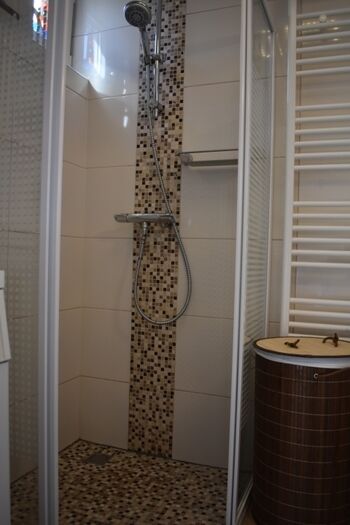 Mit 3 Schlafzimmern, eines davon im Erdgeschoss, ist das Haus perfekt für Gäste, die weniger mobil sind. Das Obergeschoss mit zwei Schlafzimmern, einem zusätzlichen WC und einer neuen Dachgaube bietet viel Platz und Licht.