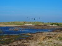 Unserem Grundstück schräg gegenüber liegt das absolut sehenswerte Kirchlein St. Marien, erbaut im 13. Jahrhundert. Der Backsteinbau mit Granitquadersockel liegt idyllisch auf einer Warf umgeben von uralten Bäumen. Die alte Kirche beherbergt einen Kreuzigungsaltar aus dem 14./15. Jahrhundert. Aus gleicher Zeit stammt der Taufstein der Kirche. Besichtigt werden kann die Kirche von Ostern bis zum Ende der Herbstferien, Mo. - Fr. von 10 - 17 Uhr.