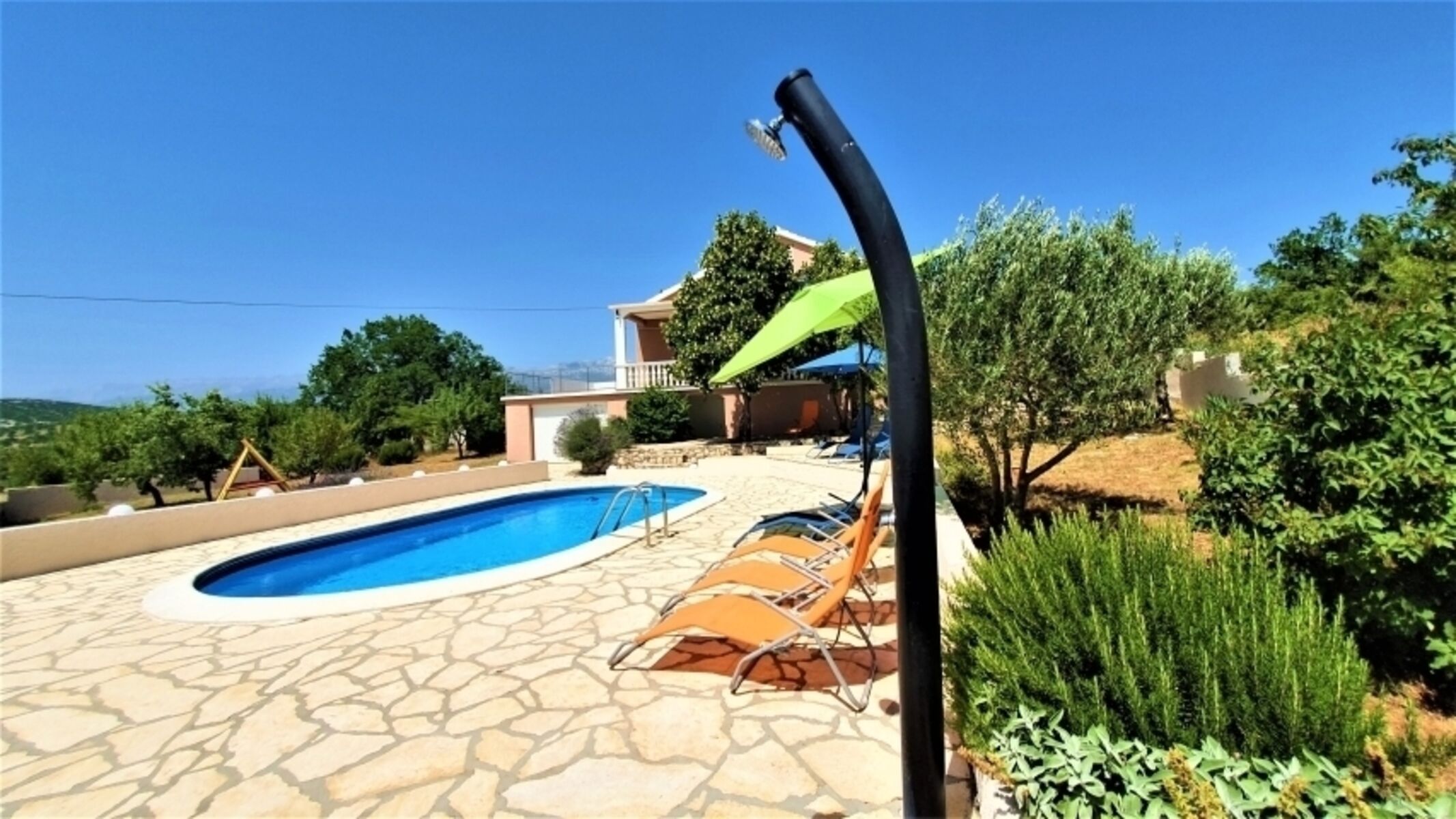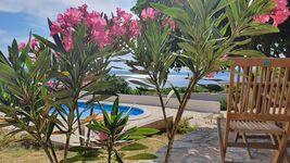 Genießen Sie von dem gesamten Grundstück aus, den atemberaubenden Blick auf das Meer und das Velebit-Gebirge.