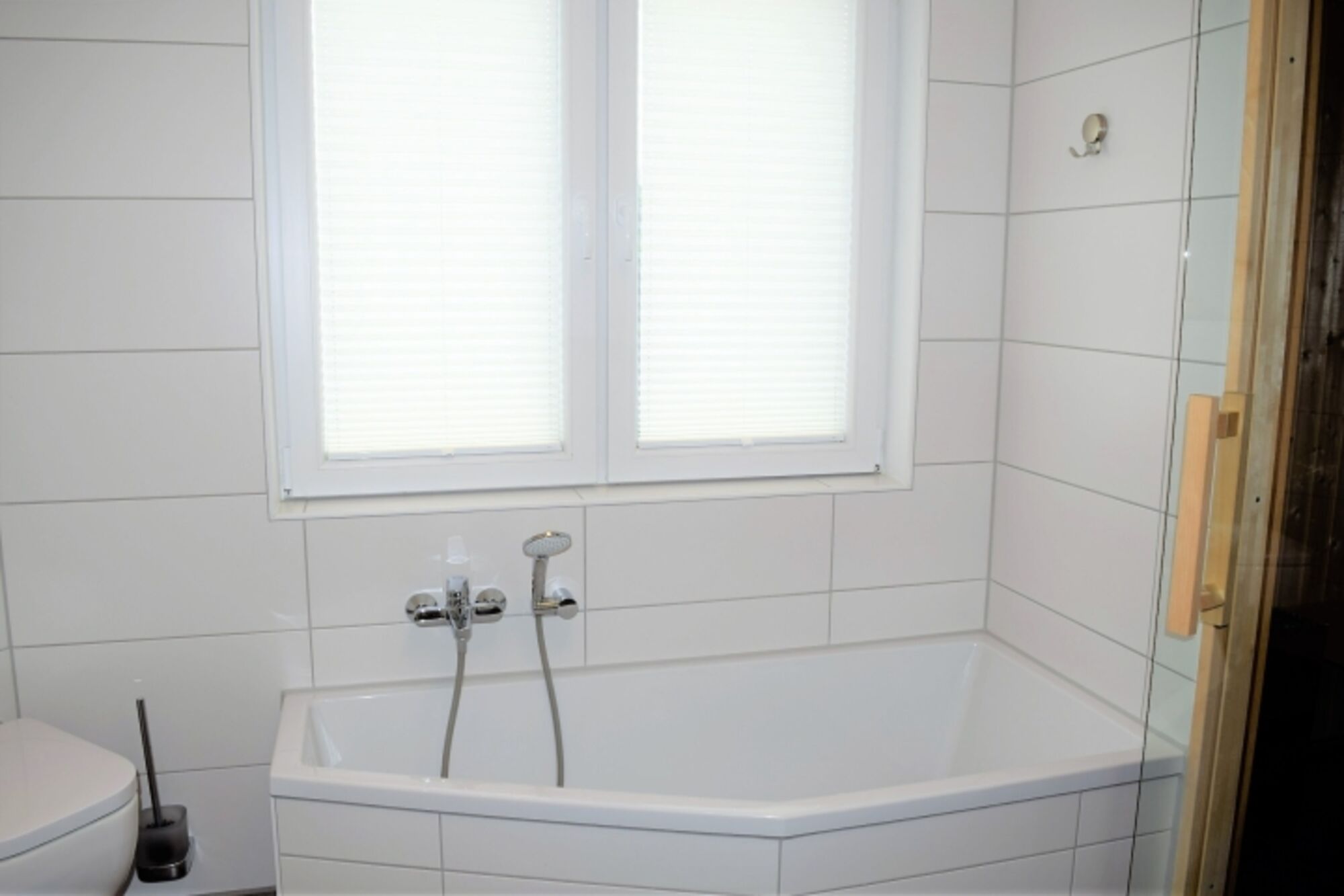 An stürmischen und/oder regnerischen Tagen kann das Badezimmer mit seiner Vollausstattung zum Wellnesstempel werden.