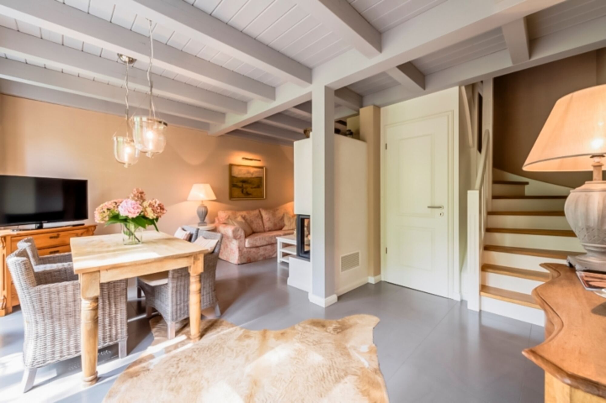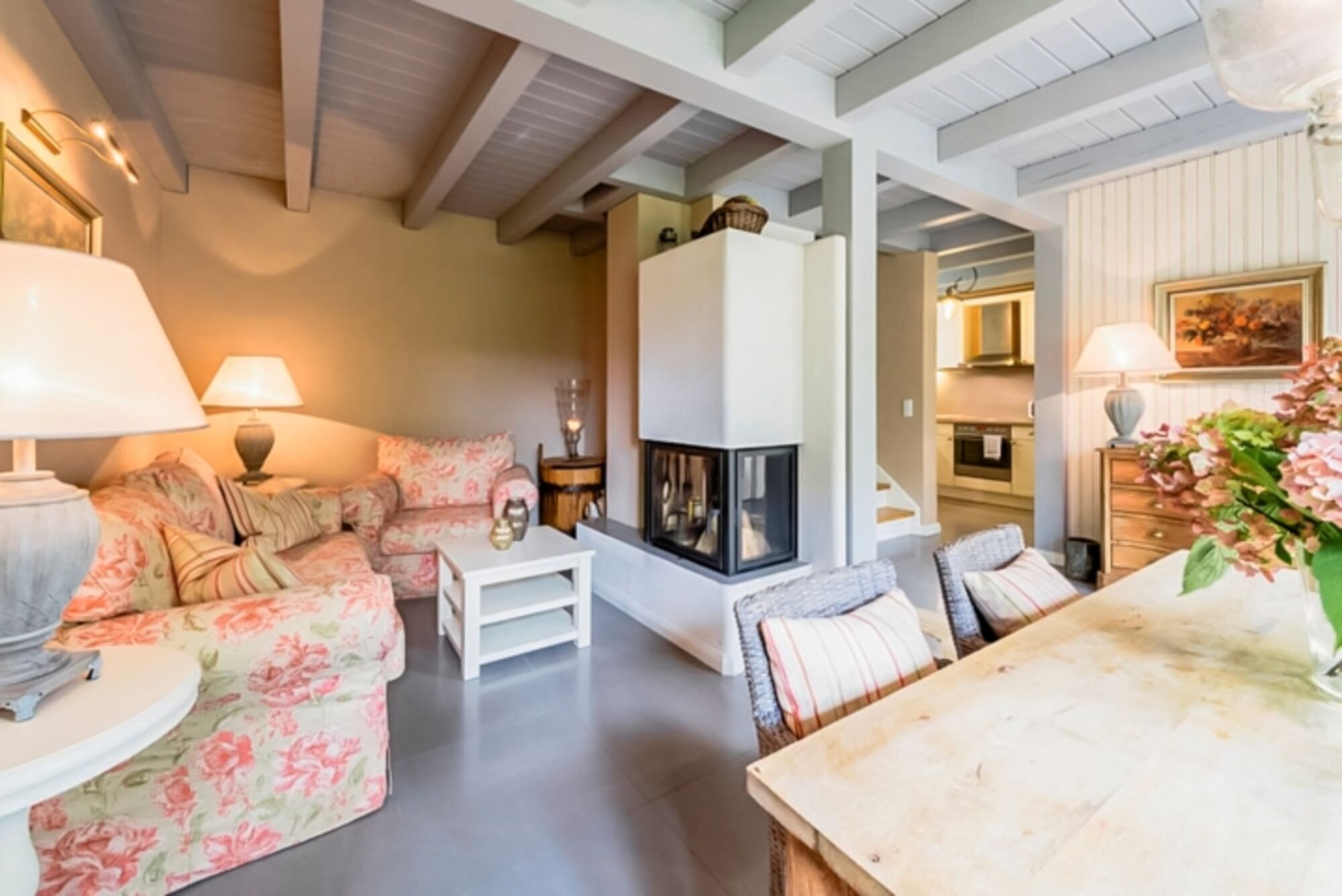 - Ein Wohnzimmer mit Kamin und gemütlicher Sitzgarnitur