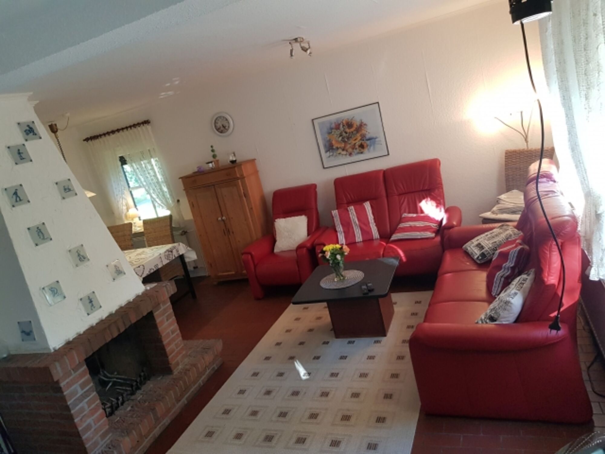 Die im Landhausstile gemütliche Einrichtung mit sichtbarem Gebälk, Holzdielen, Fliesen und ein offener Kamin, verleiht dem Haus einen besonderen Charme.