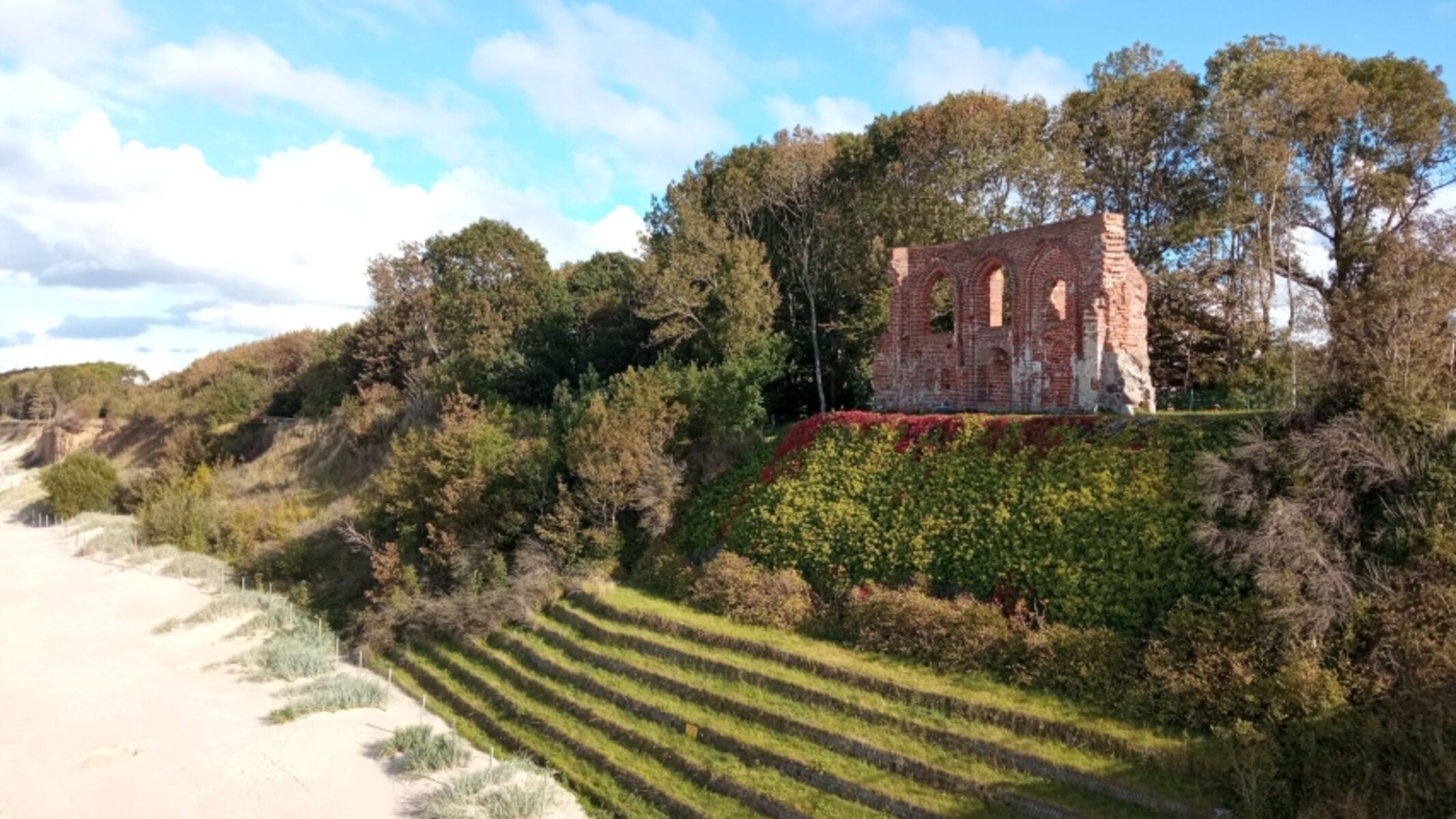 Bis Bahnhof Trzesacz fahren, dann über die Gleise in den zweiten Weg rechts rein