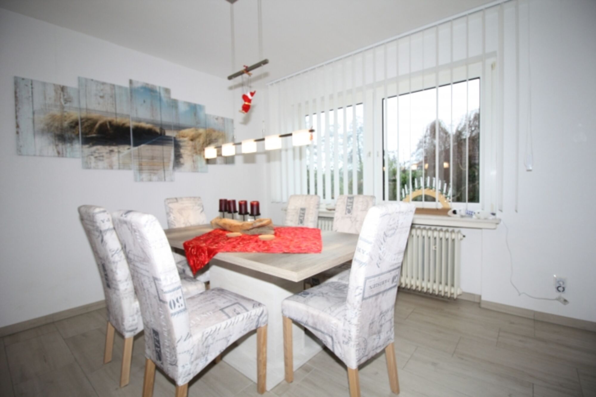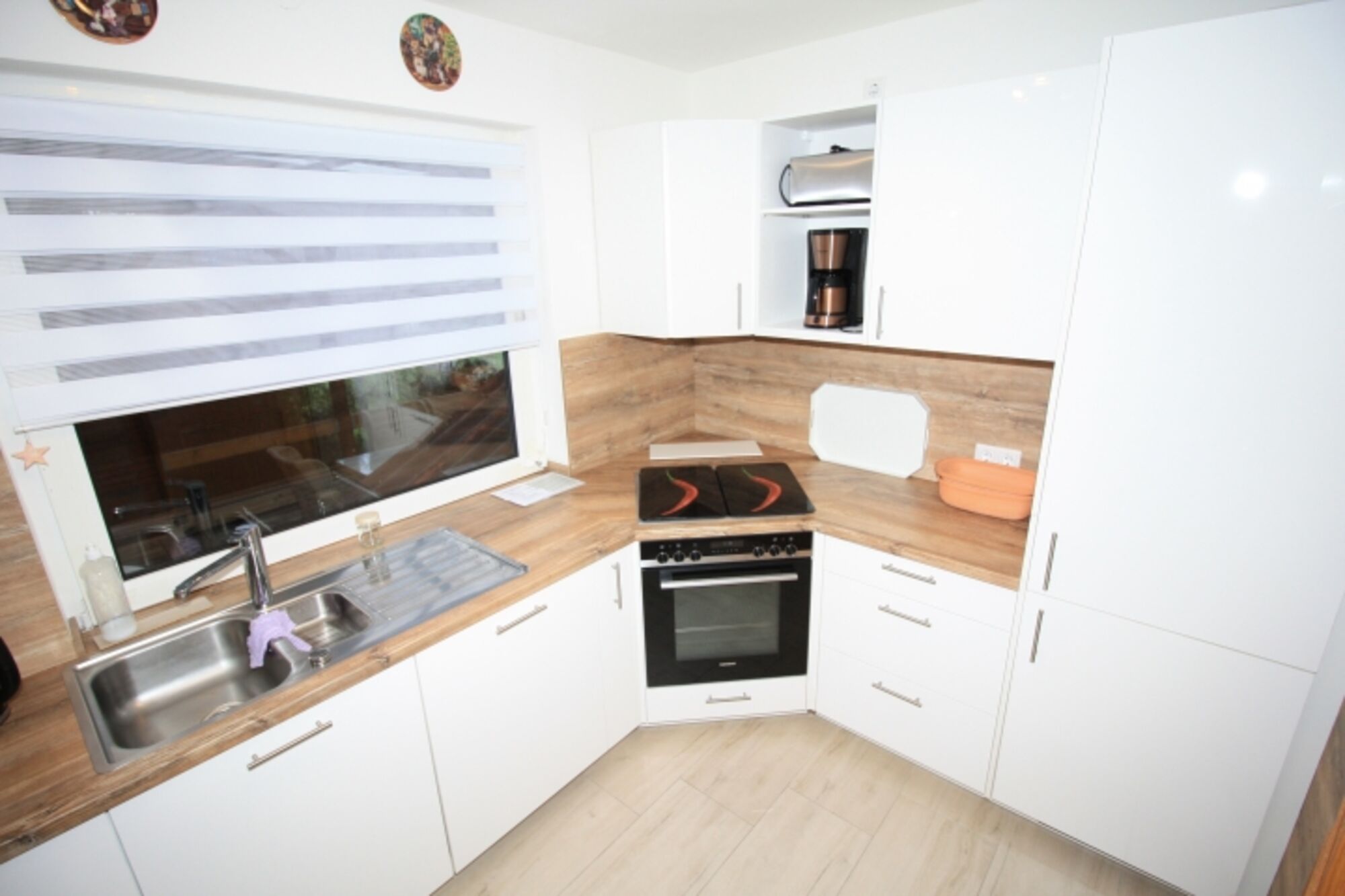 Ausstattung: Komplett neue Einbauküche mit Ceranfeld. Geschirrspülmaschine, Kaffeevollautomat und Kaffeemaschine, Kühl-Gefrierkombination, Esszimmer mit Durchreiche zur Küche, Kaminzimmer mit offenem Kamin und TV, großes Wohnzimmer mit extra großem TV mit Soundbar, 2 Schlafzimmer mit Boxspringbetten 1. Schlafzimmer (1Bett: 180x200) und 2. Schlafzimmer: (2 Betten je 100 x 200), Im Obergeschoß befindet sich ein weiteres 3. Schlafzimmer mit einem Bett (ca. 1,60 m) und einem extra Fernseher!
