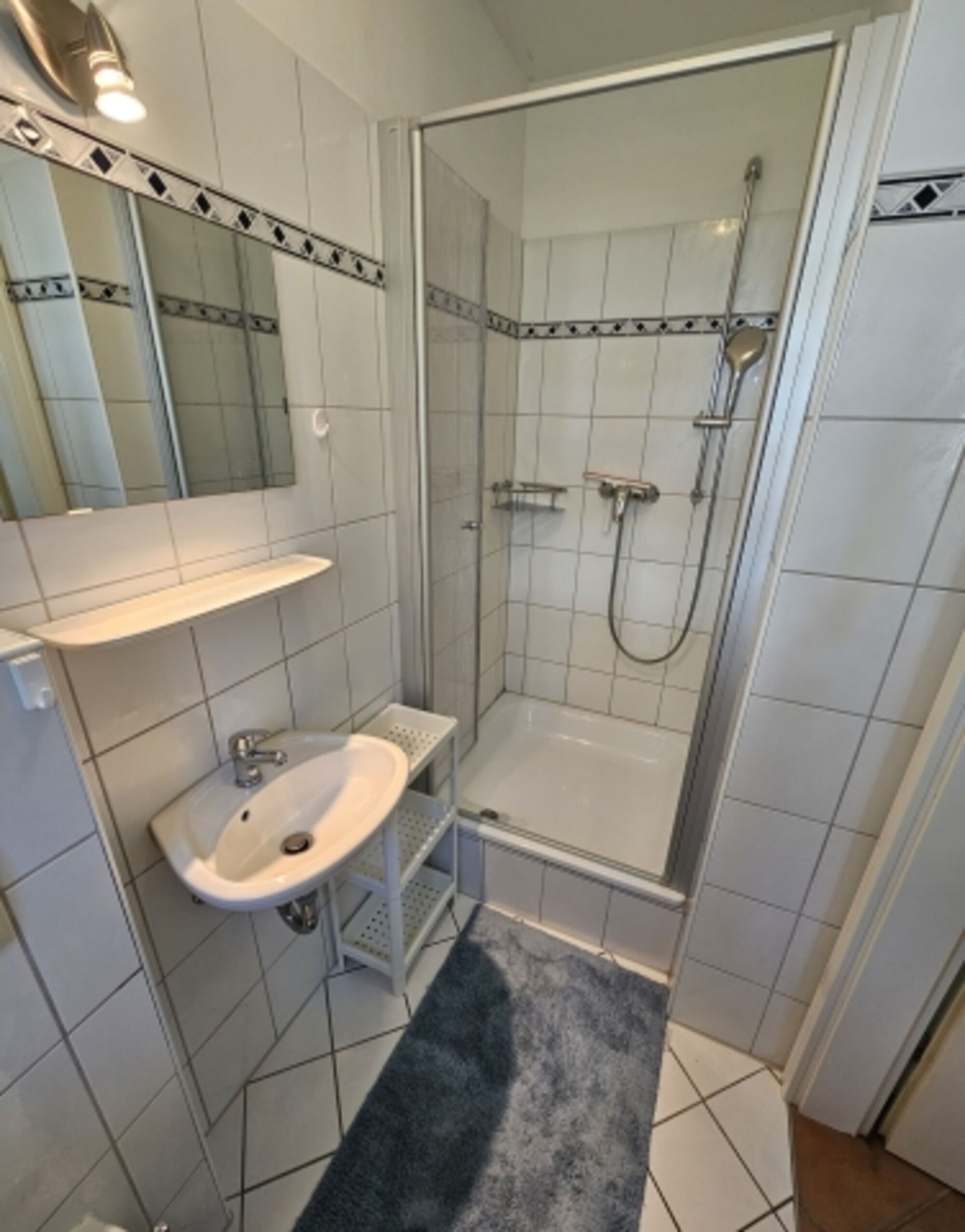 1 Badezimmer im Erdgeschoss mit Dusche und WC.