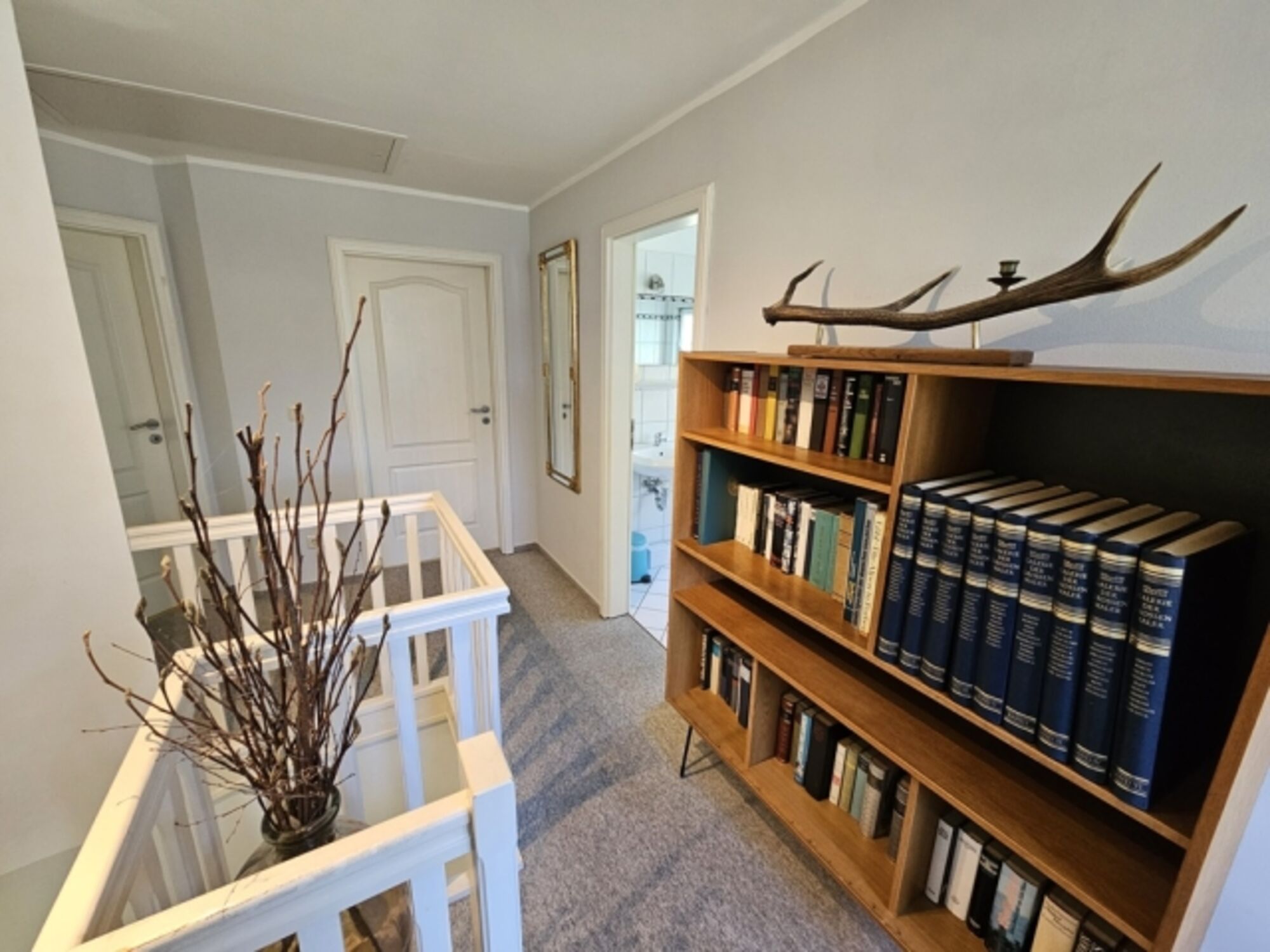 Im oberen Flur befindet sich eine Bibliothek für jung und alt.