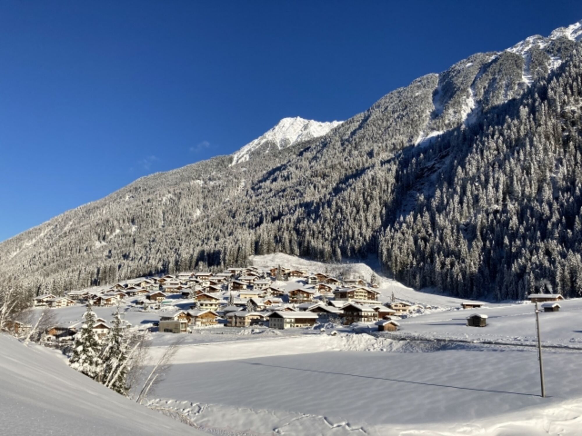 Im Winter beginnt der Pistenspaß schon vor der Haustür, denn es sind nur 11km bis zur Talstation des Stubaier Gletschers.
