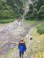 - Sonnenbalkon mit Blick auf den Gletscher und den Mischbachwasserfall