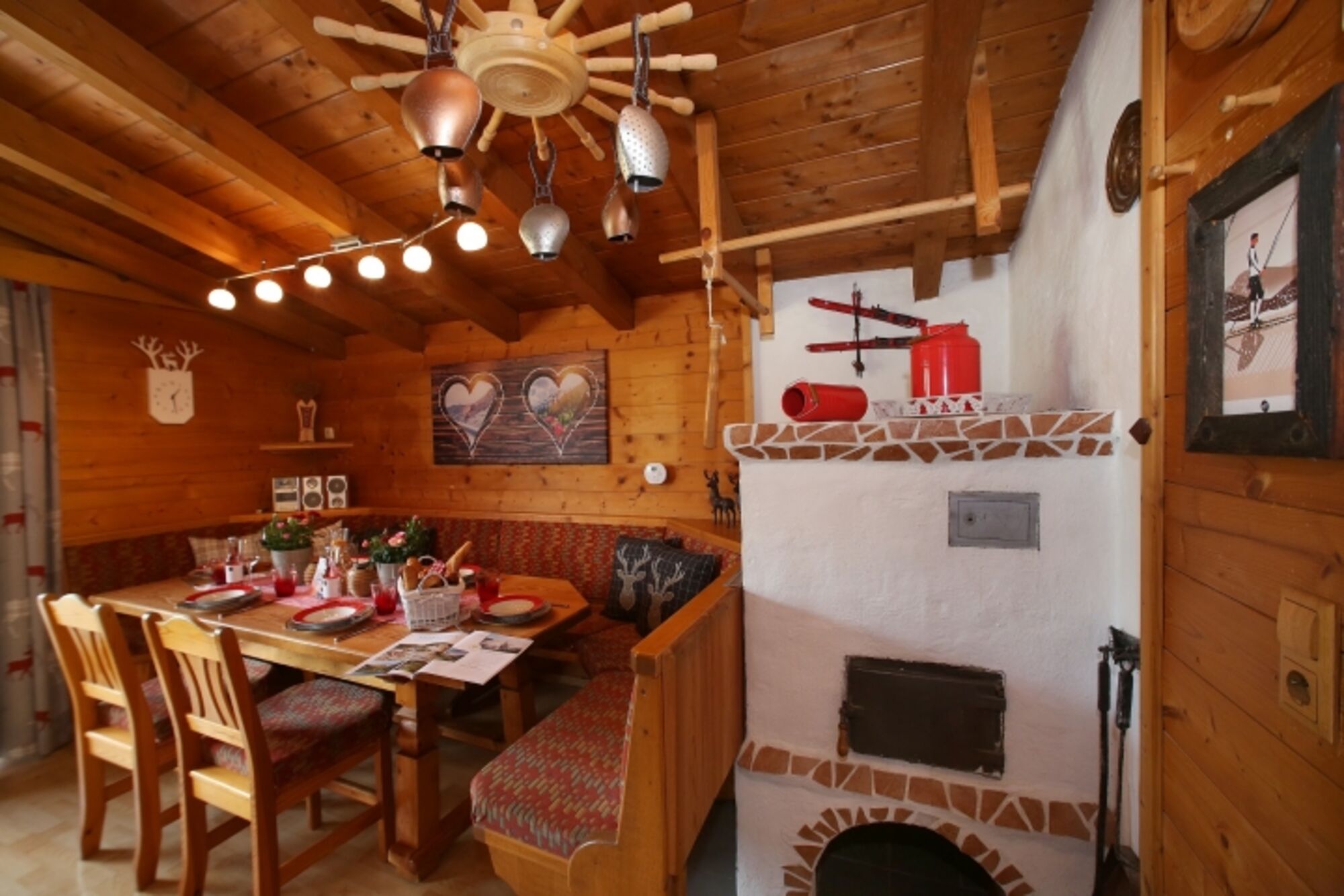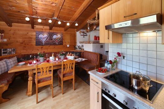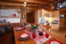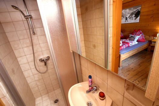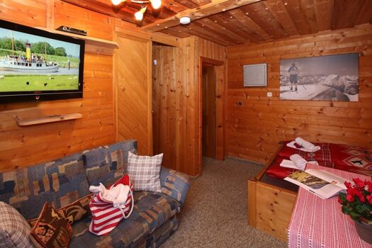 Diese Hütte ist für sechs bis maximal acht Personen geeignet. Die Hütte hat eine österreichische Einrichtung mit viel Holz und einem gemütlichen Ofen, der im Winter eine wohlige Wärme spendet. Es gibt drei Schlafzimmer mit Doppelbett und einem eigenen Badezimmer mit Toilette. In einem Schlafzimmer befindet sich ein Etagenbett für zwei Kinder.