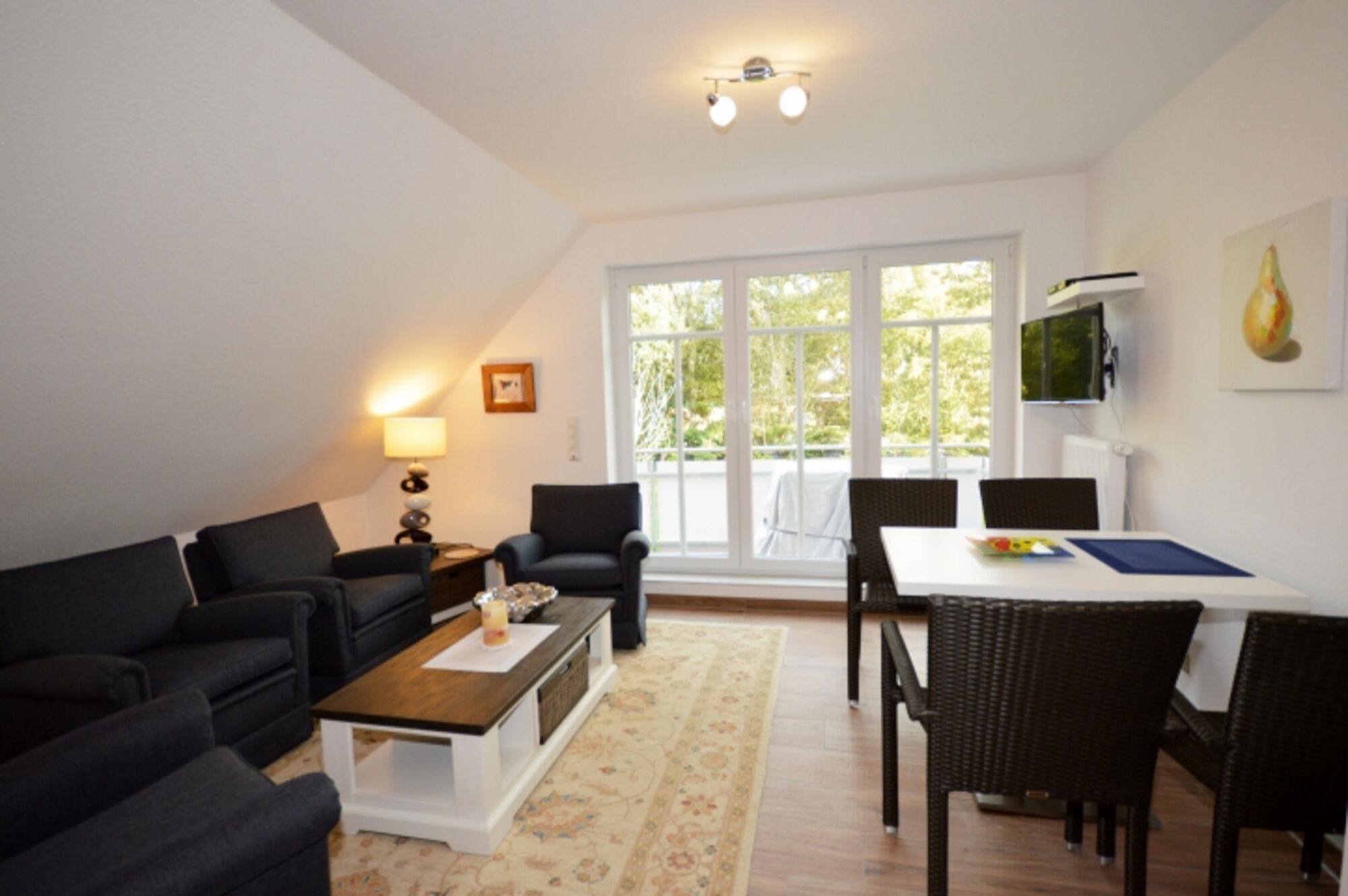 Der Fernseher ist von beiden Bereichen gut zu sehen