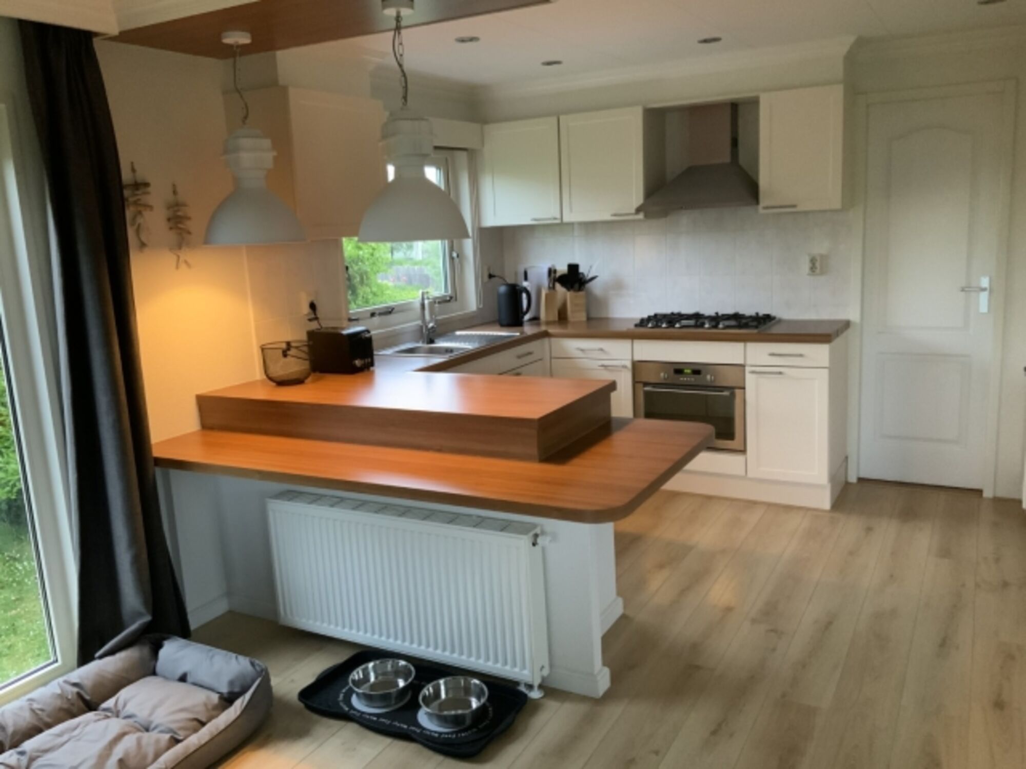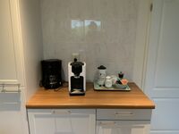 Die Küche ist komplett ausgestattet, es gibt eine ,Kaffee-Ecke" mit Senseo-Pad-Maschine und auch Filtermaschine, im Küchen-Nebenraum finden Sie Staubsauger, Bügeleisen, Bügelbrett und diverse Dinge, die man im Haushalt benötigt. Vorhanden sind Spülmaschine, Gasherd mit Backofen und Microwellenfunktion, zusätzlich zum