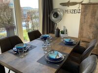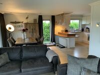 TV schauen Sie bei uns mit waipu.tv-Stick und z.Zt. 192 deutschen Fernseh-Sendern. Wohnzimmer, Essbereich und Küche sind offen gestaltet. Vom Wohnbereich ist der direkte Zugang auf die überdachte Terrasse möglich und beim Blick in den Garten können Sie am Teich die „Besucher-Enten" beobachten. Eine fleißiges Meisen-Ehepaar sorgt regelmäßig für die Kinderschar im Nistkasten an der Terrasse. Was sonst noch so fliegt, lässt sich mit den angebrachten Mückengittern fernhalten. Frühstück oder das Glas Wein auf der Terrasse - dazu die herrliche Meeresluft - so fühlt sich Urlaub an! Kurzum, schon am Haus fühlt man die Natur!