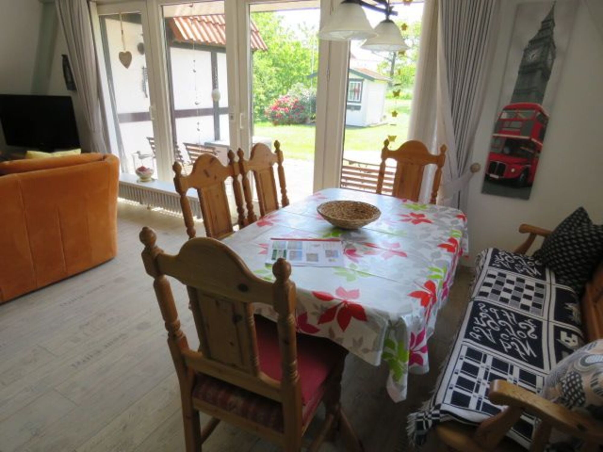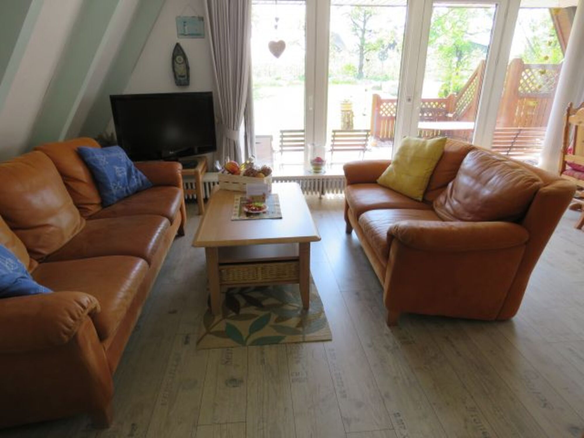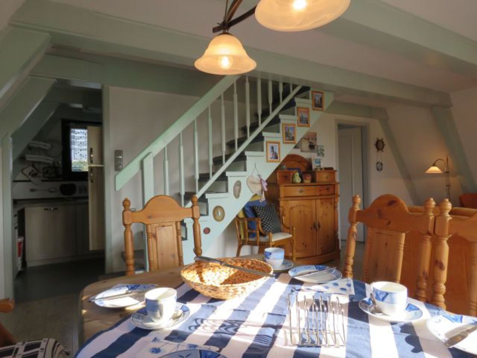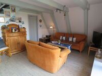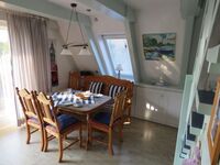 Ca. 68 m² Wohn- und Nutzfläche, bis 6 Personen, EG: Wohnraum mit Essecke, Küche (4 Plattenherd/Backofen, Kühlschrank, Gefrierfach)[4-Platten-Ceranfeld/Backofen, Kühlschrank, Gefrierfach, Geschirrspüler]. Dusche/WC, Diele, Abstellraum innenliegend. Terrasse. OG: 1 Schlafraum mit 2 Betten oder 1 Doppelbett, 1 Schalfraum mit 2 tlws. 3 Betten und Schlafkoje im Giebel. Das Ferienhaus ist komplett für 6 Personen eingerichtet.